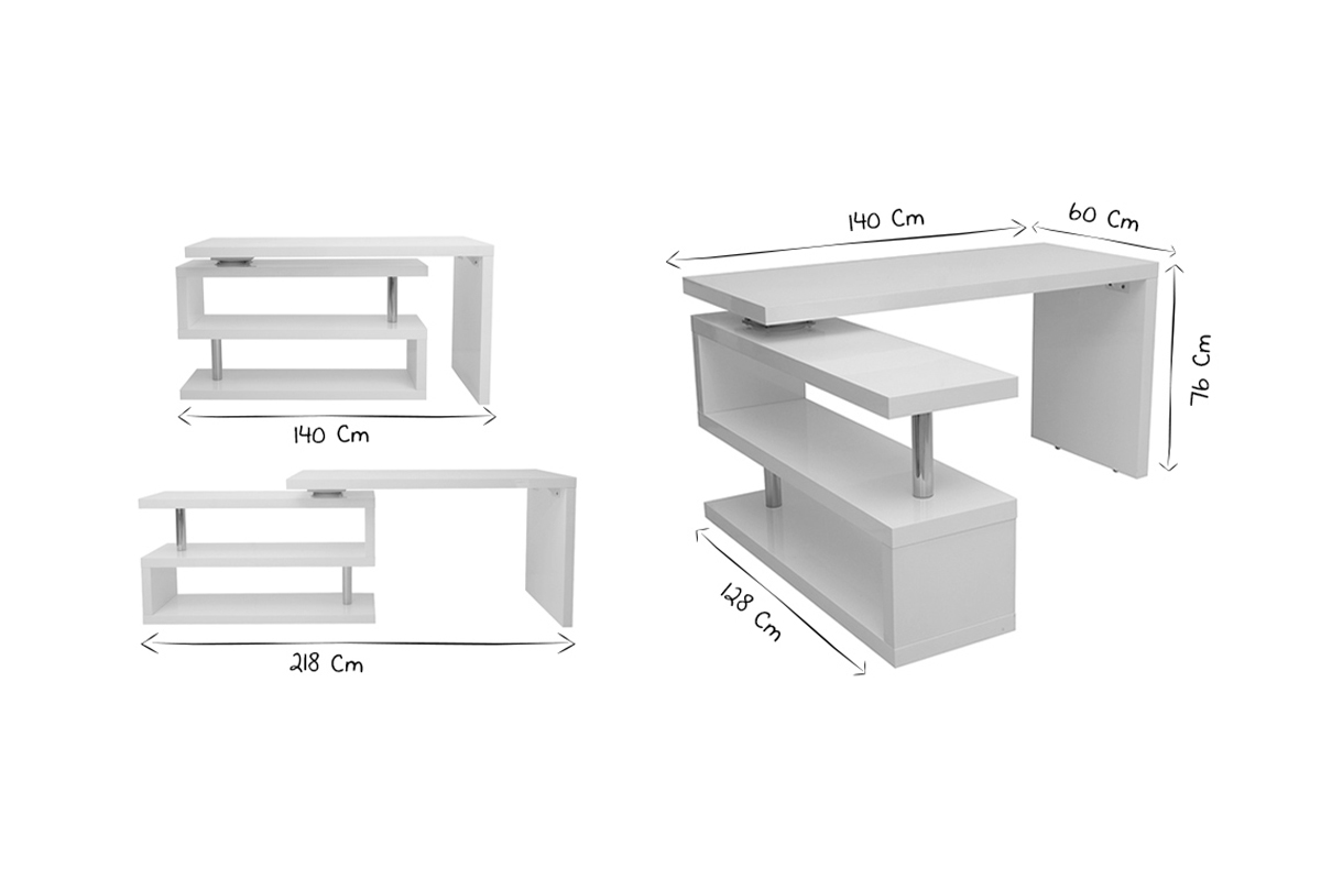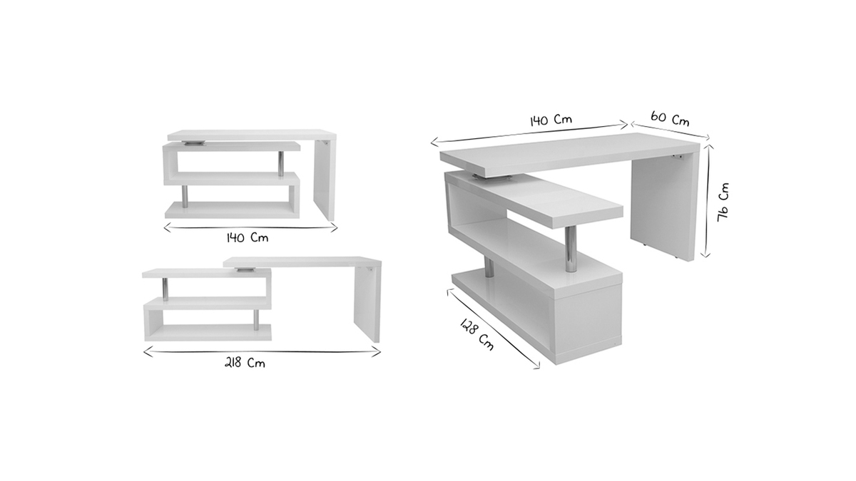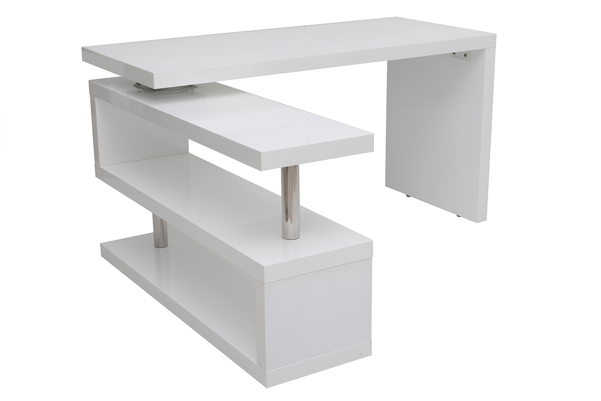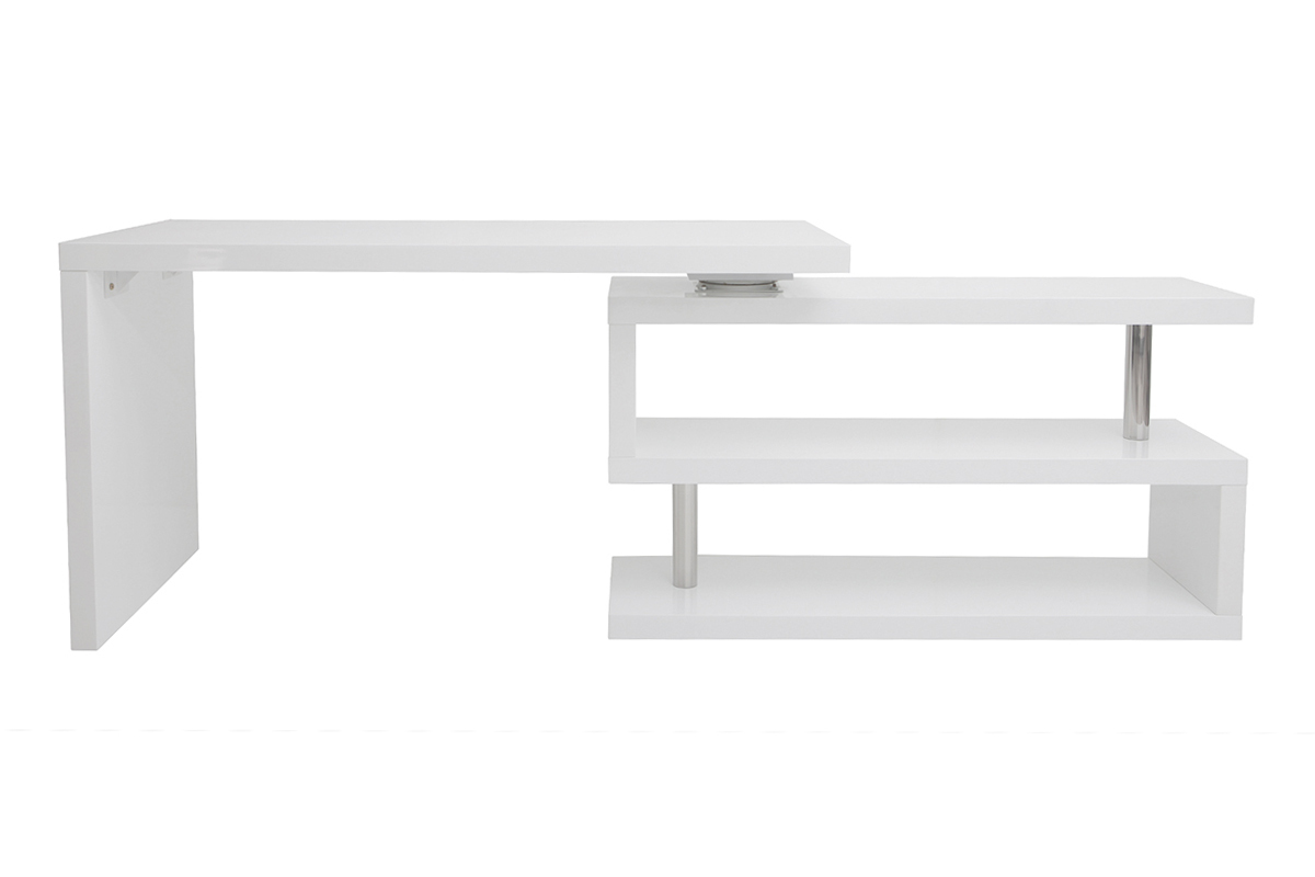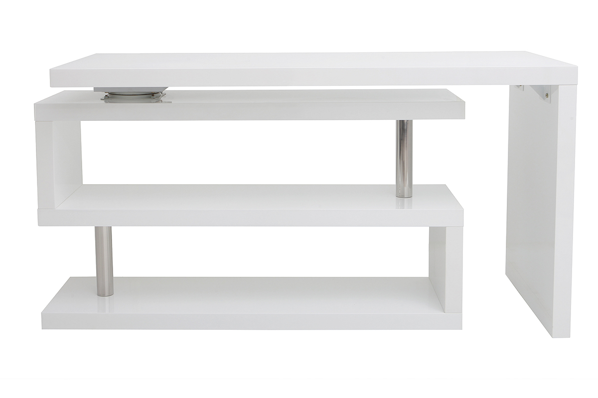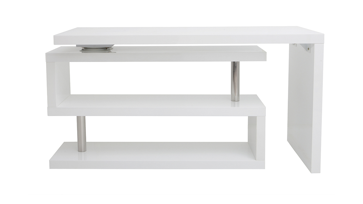 Des lignes originales, un revêtement laqué blanc de grande qualité ainsi qu'un plateau pivotant très pratique résument parfaitement ce meuble. Une jolie chaise de bureau tendance complétera l'ensemble !
