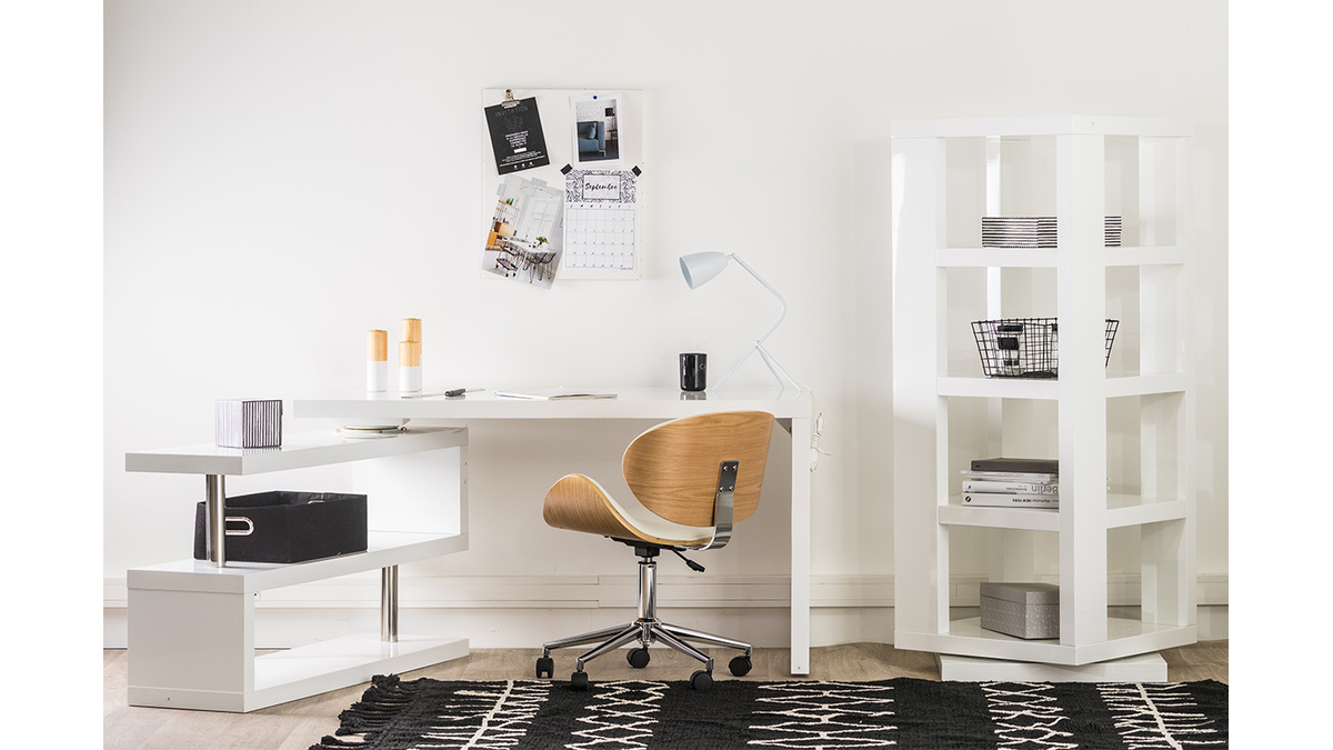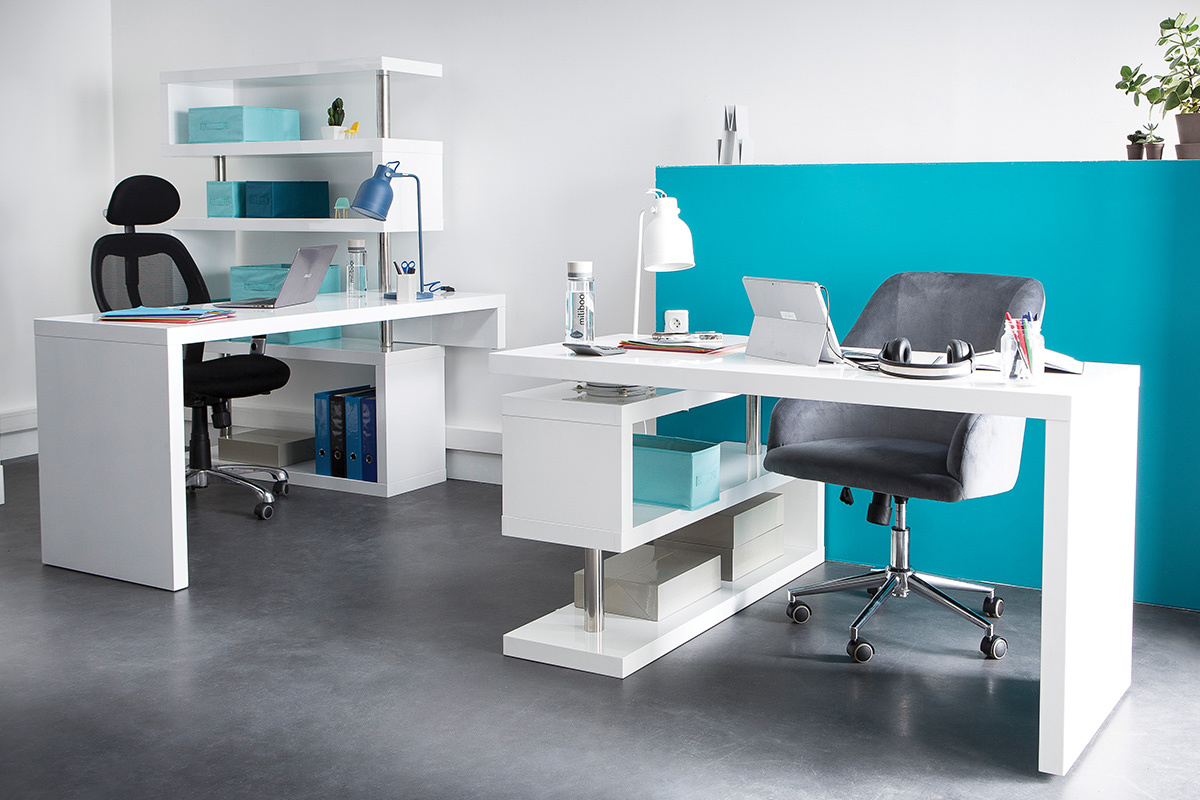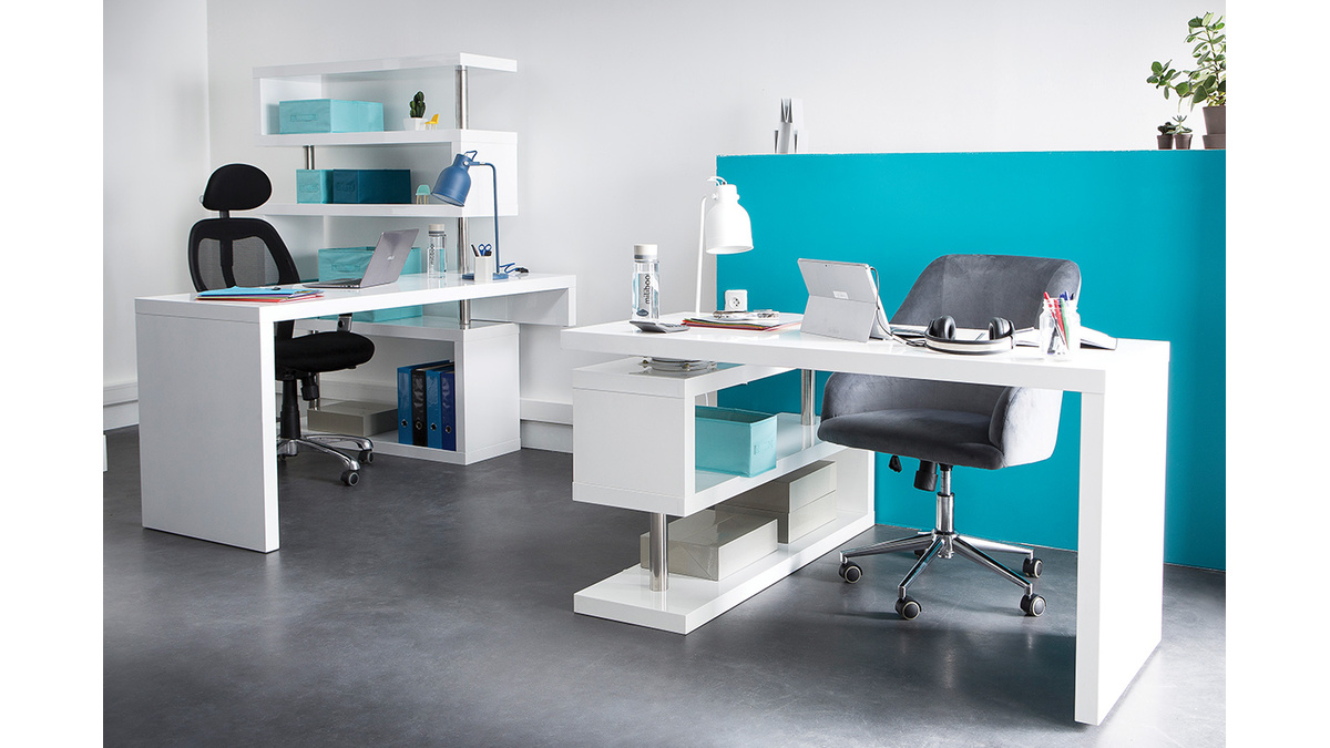 Parce qu'il n'est pas toujours évident de trouver un bureau qui s'adapte parfaitement à notre aménagement intérieur, on a imaginé le bureau pivotant MAX, un bureau entièrement modulable !