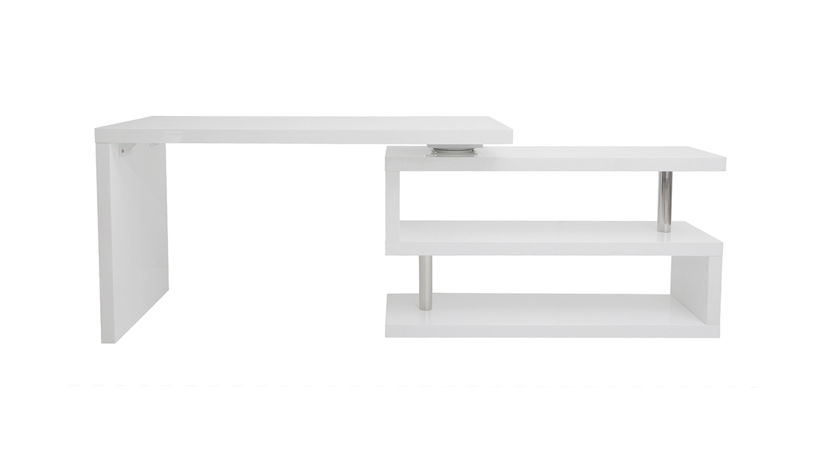 Composé d'un plateau rotatif à 360 degrés et d'un élément de rangement, le bureau design MAX prendra la forme qui vous plaira. En angle droit, entièrement déplié, avec l'étagère à droite ou à gauche... tout est modifiable en fonction de vos besoins. Son élément mobile à la forme originale apporte à la fois une solution de rangement pour dossiers, imprimante, fournitures et une touche d'originalité à l'ensemble grâce à sa forme en S traversée de barres chromées.