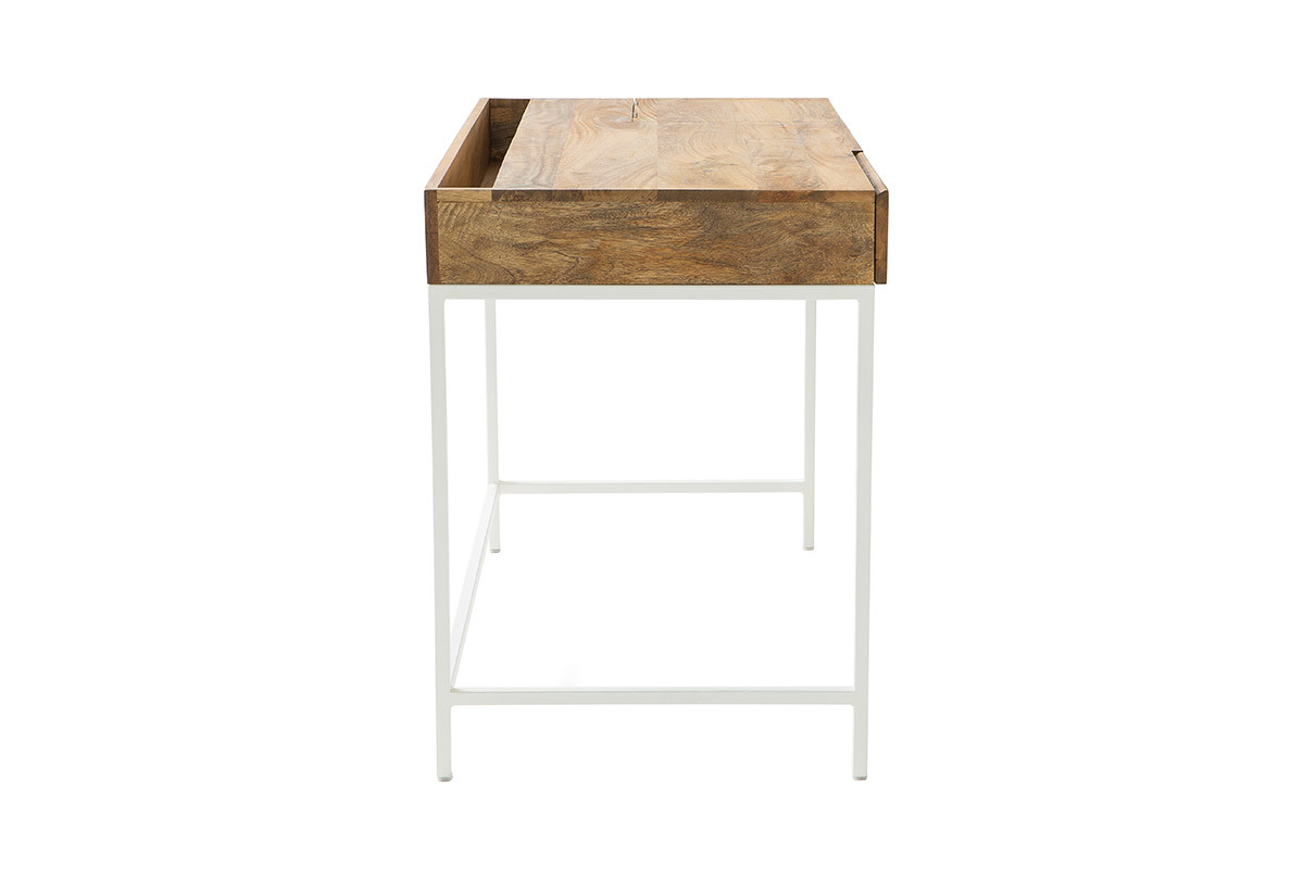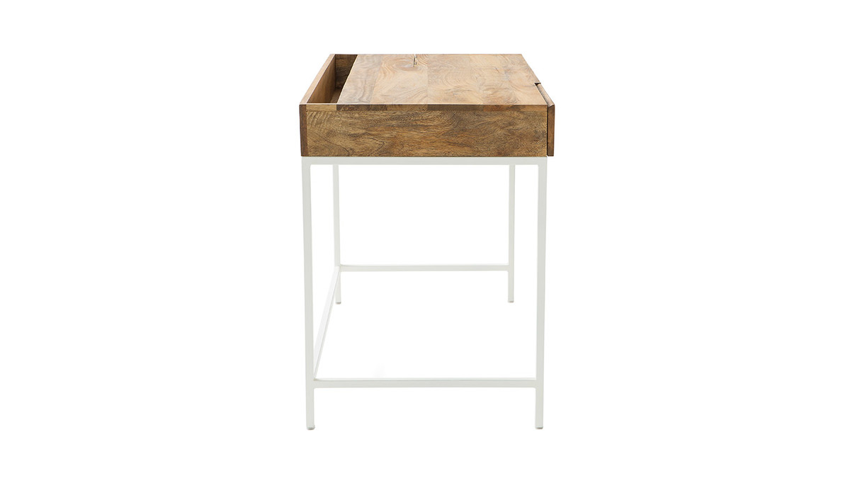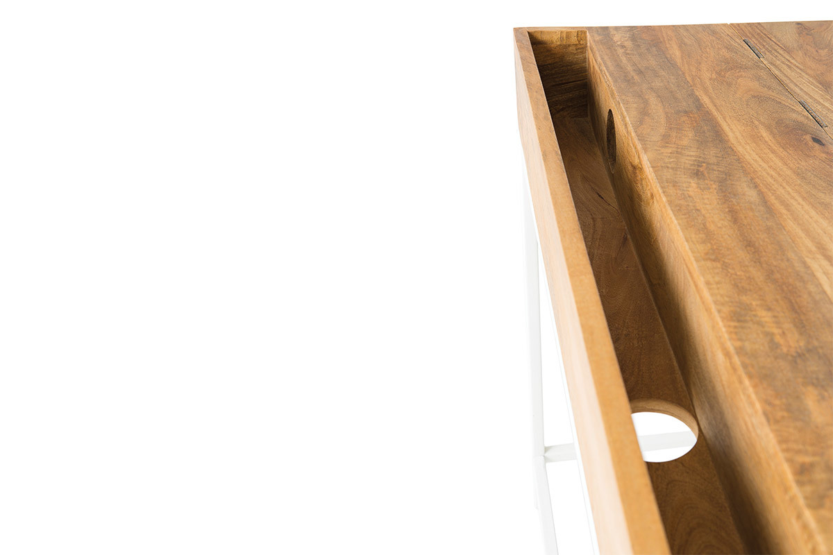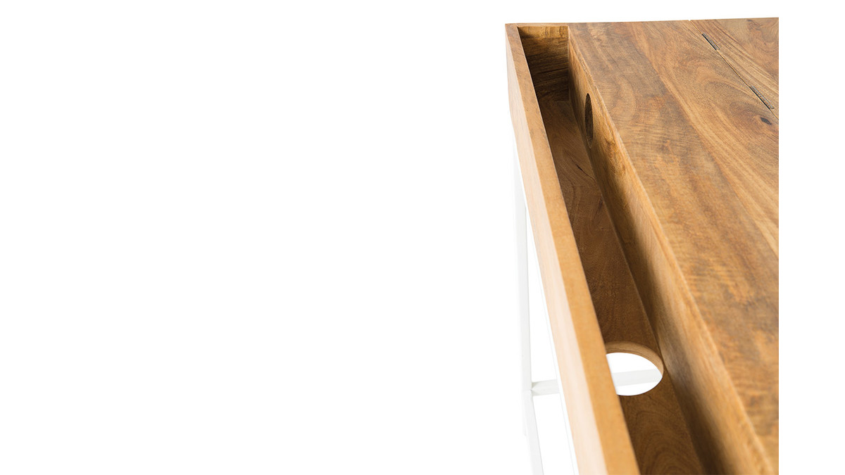 Côté rangements, il est pratique et fonctionnel ! Muni d'un tiroir, d'un caisson intégré protégé par une porte à battant et d'une niche centrale ouverte, vous pourrez y ranger tout votre essentiel de bureau et des objets du quotidien. Ce bureau en bois massif BOHO dispose également d'un passe-câble, idéal pour vos branchements d'ordinateur.