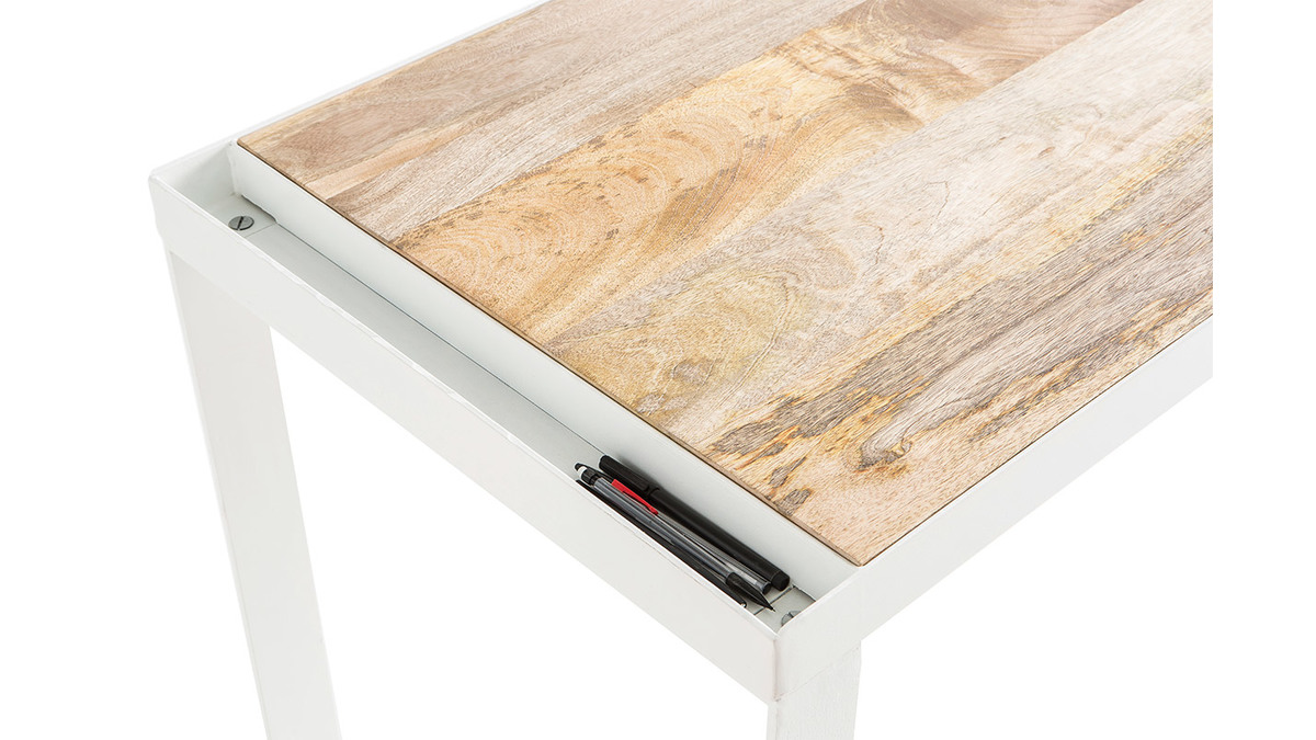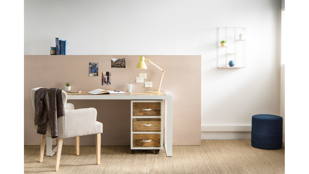Très tendance, le bureau en bois massif PUKKA s'accordera parfaitement avec une décoration du même style ou une ambiance contemporaine. Le métal de couleur blanche lui permettra de s'accorder facilement avec des couleurs vives tout en faisant de ce bureau industriel une pièce très originale.