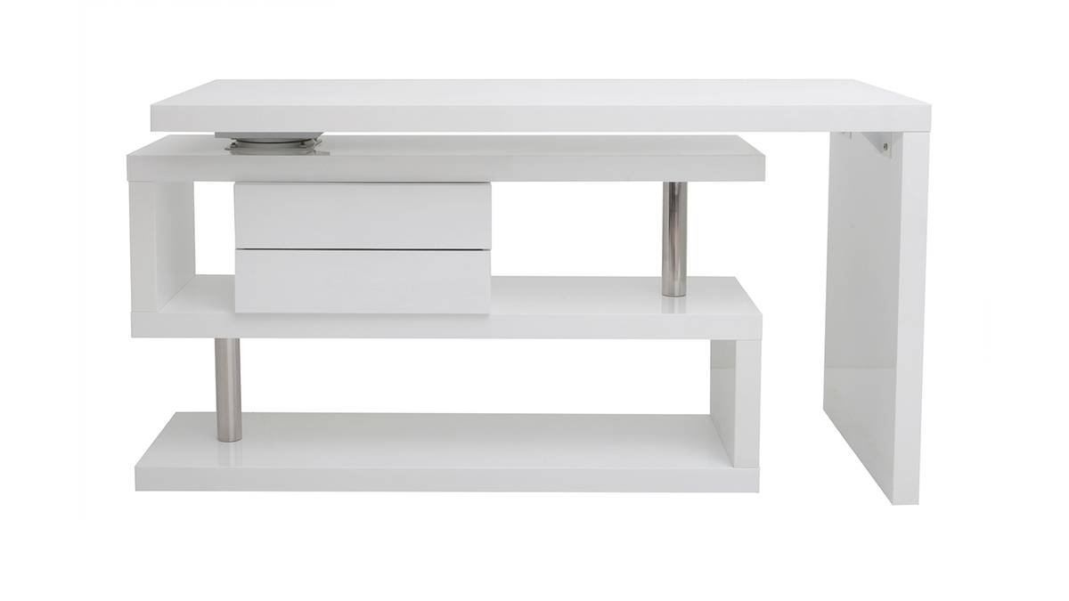 Bureau modulable design avec rangements blanc laqué L140-218 cm MAX