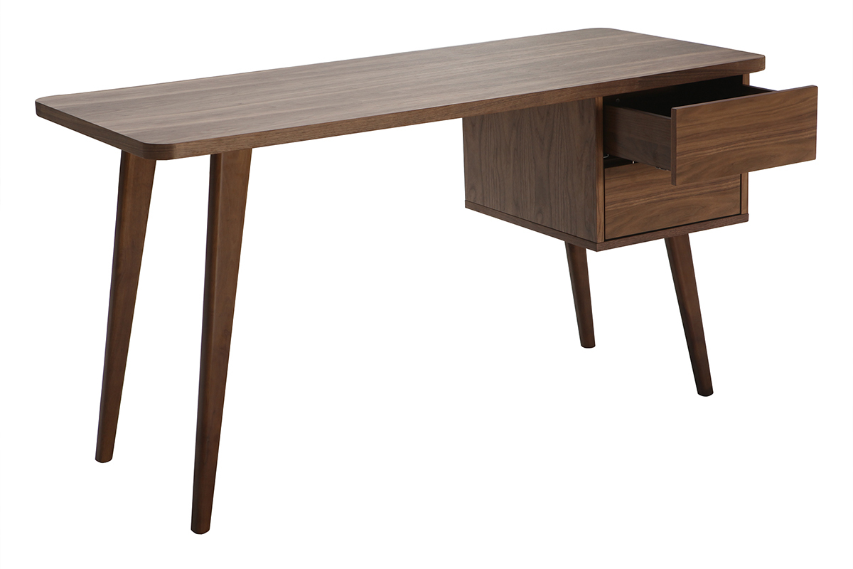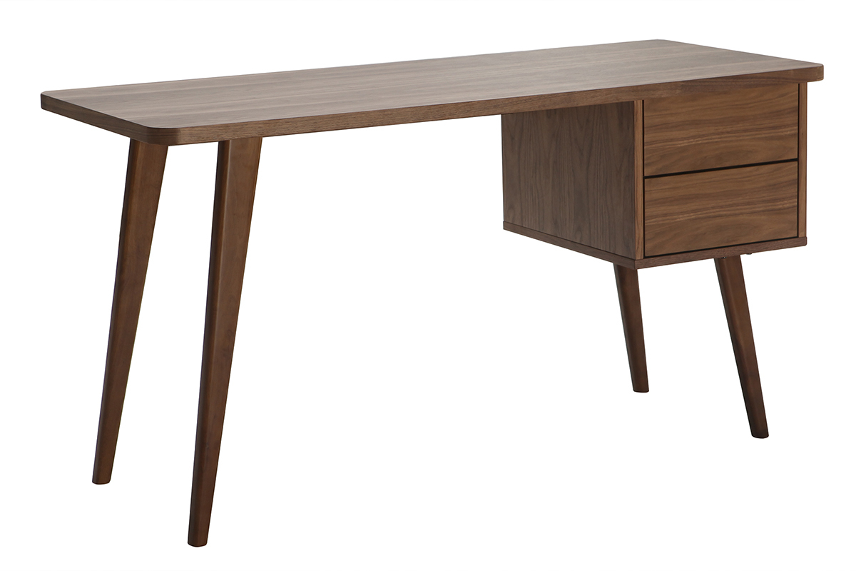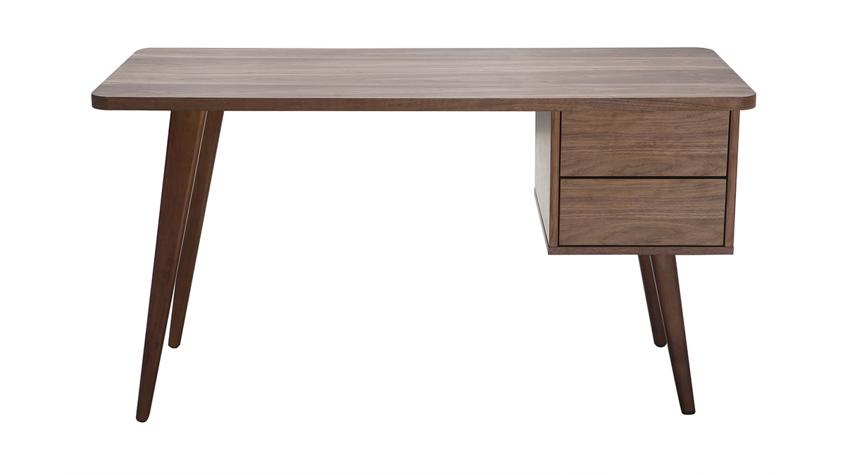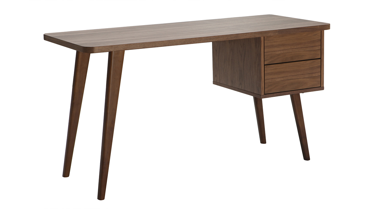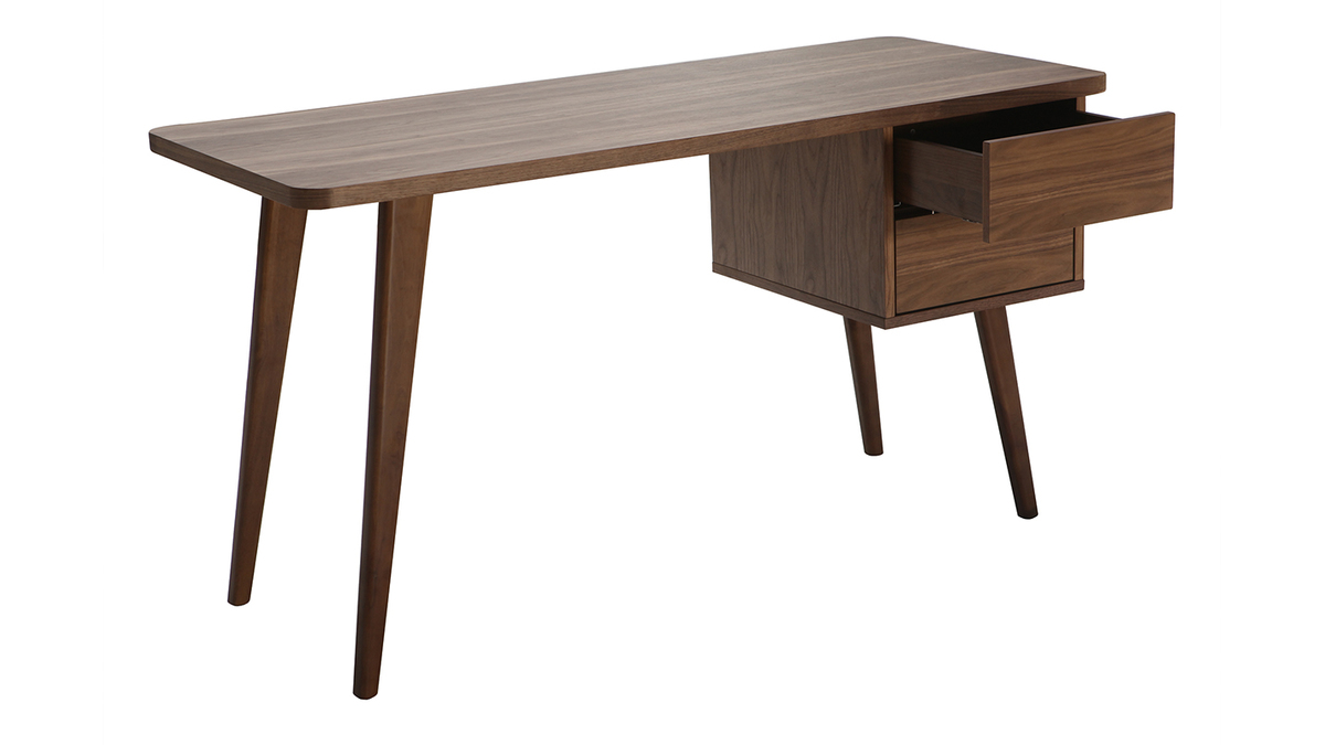 Bureau avec rangements 2 tiroirs bois foncé noyer L140 cm FIFTIES à assembler.
