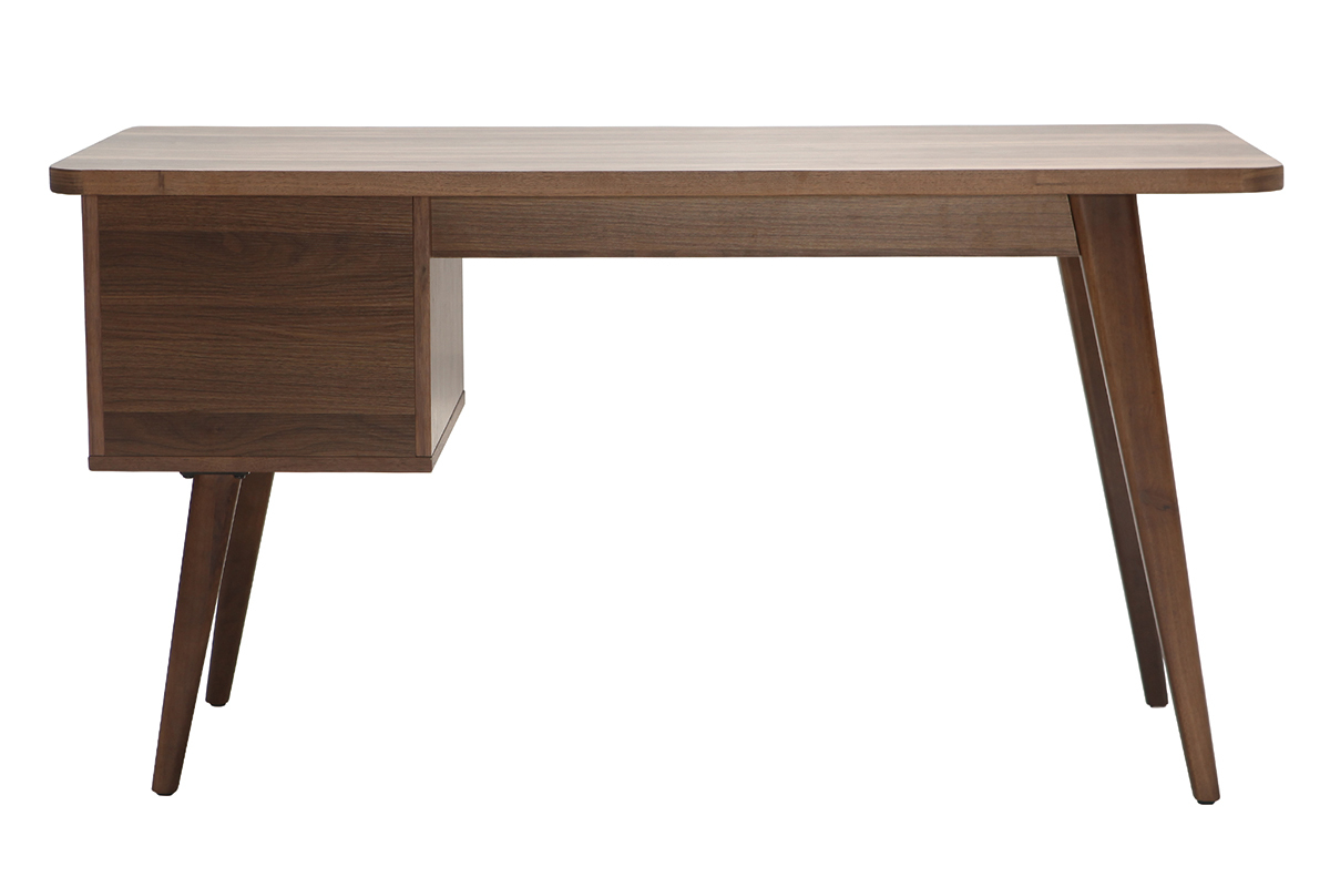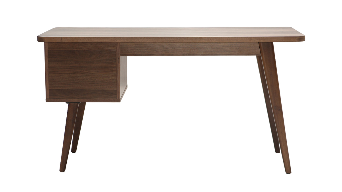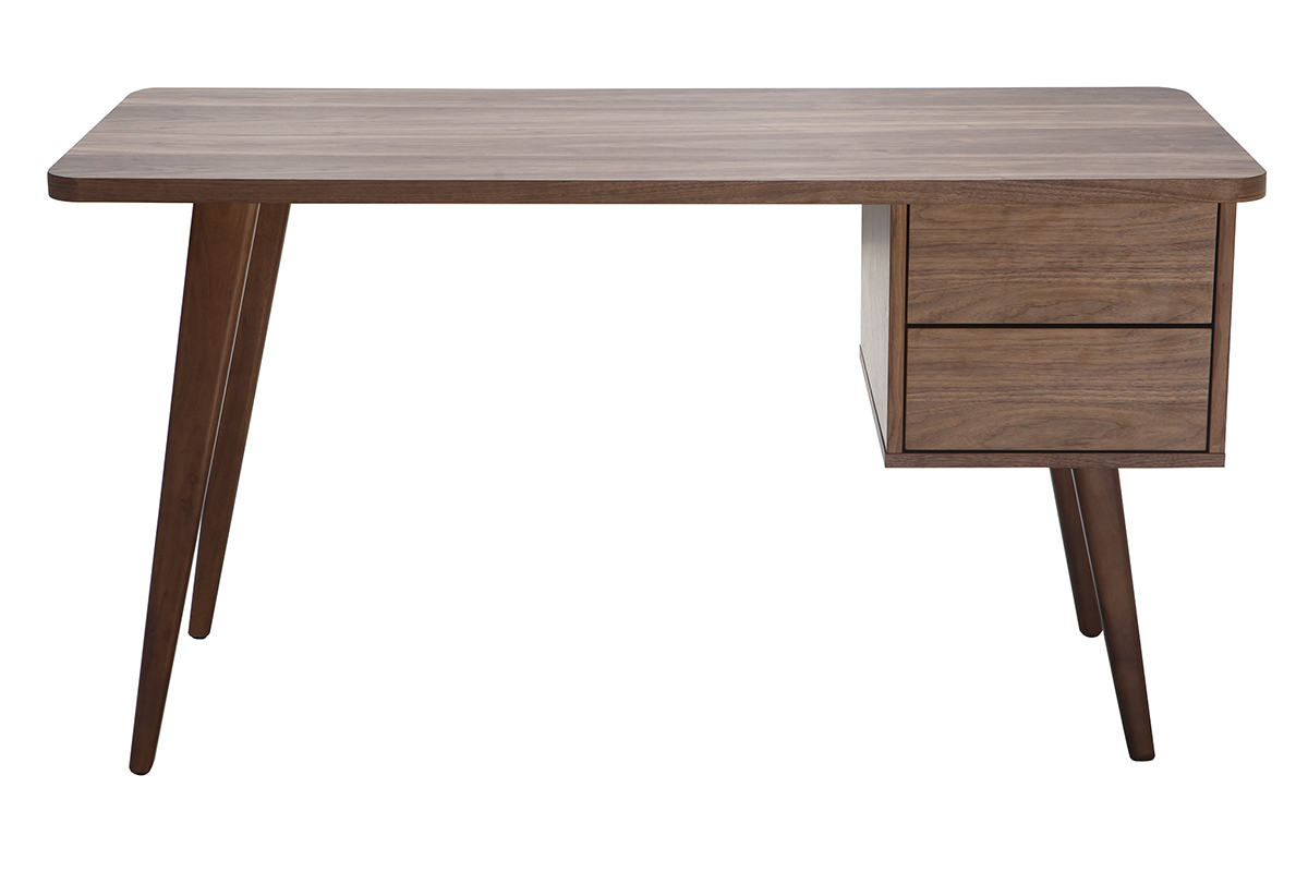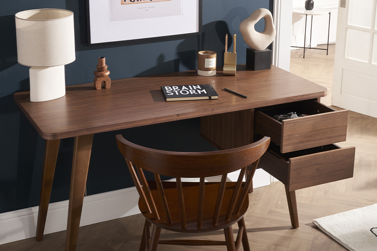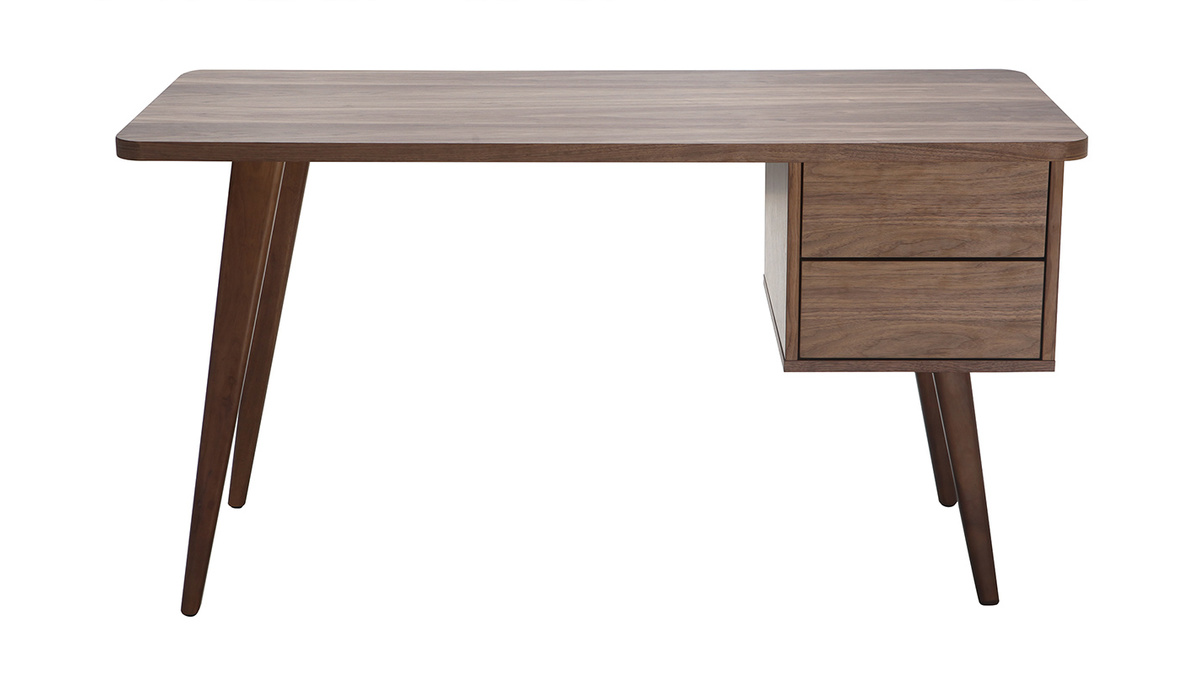 Bureau avec rangements 2 tiroirs bois foncé noyer L140 cm FIFTIES à assembler.