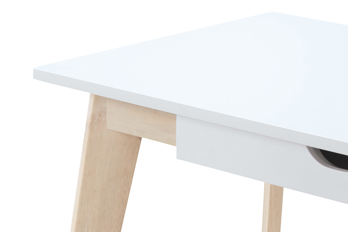 Son plateau en panneaux de fibres de bois blanc et ses pieds évasés en chêne clair font de lui un bureau moderne et design. Classique mais non sans charme, ce bureau plaira par sa forme simple et efficace. Inspiré tout droit des pays nordiques, il reste une pièce indémodable dans votre ameublement scandinave.