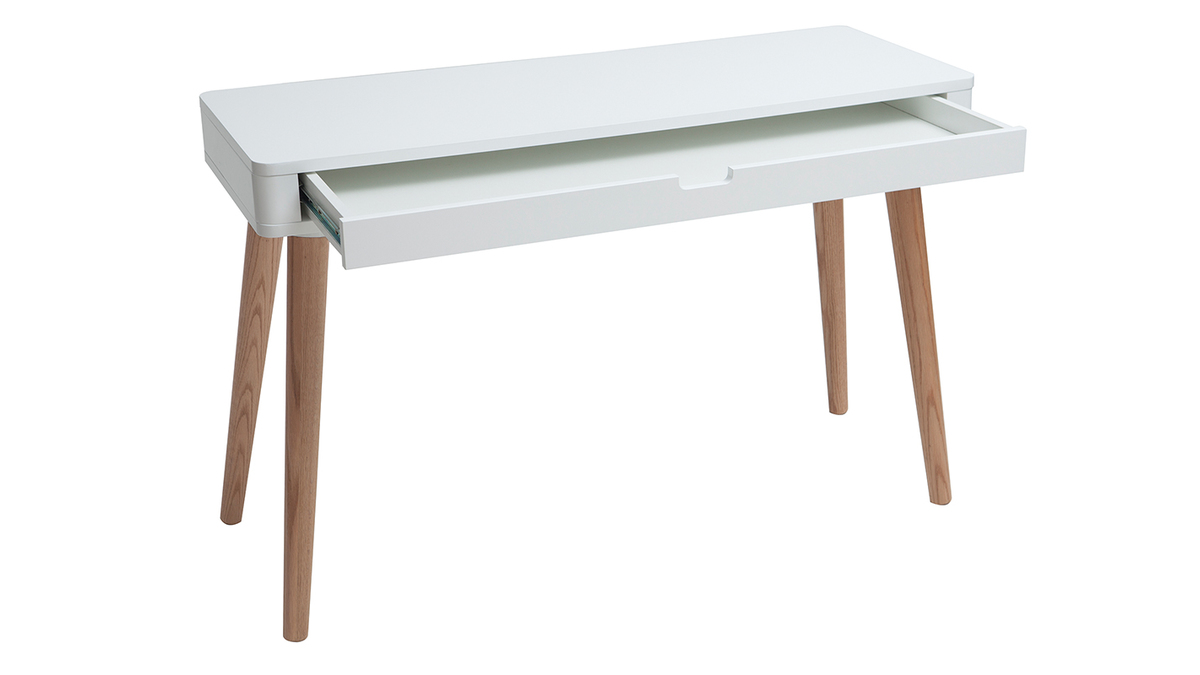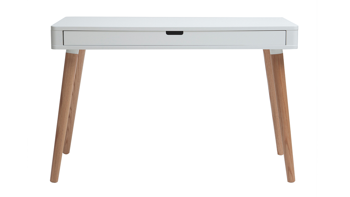 Ce bureau scandinave concentre tout ce qui fait le charme du design des pays nordiques : une forme épurée, des matériaux naturels et une couleur lumineuse. Une silhouette intemporelle qui a tout juste ! Les quatre pieds en chêne massif ont été associés à une structure blanche en panneaux de fibres de bois, offrant ainsi un rendu chaleureux.