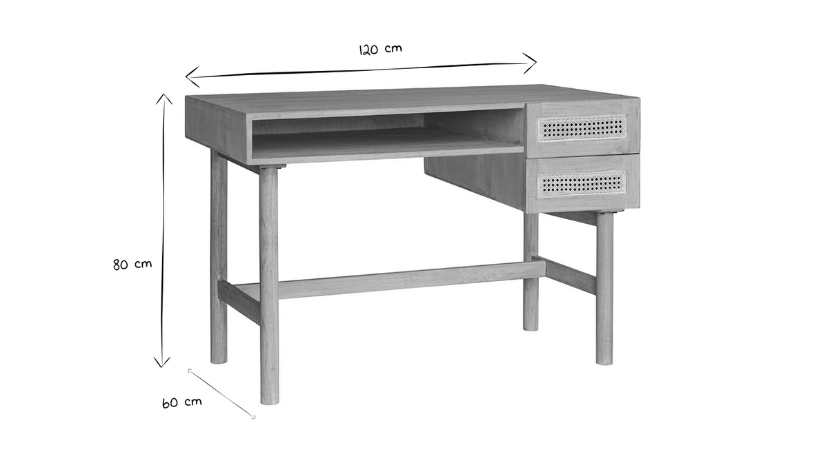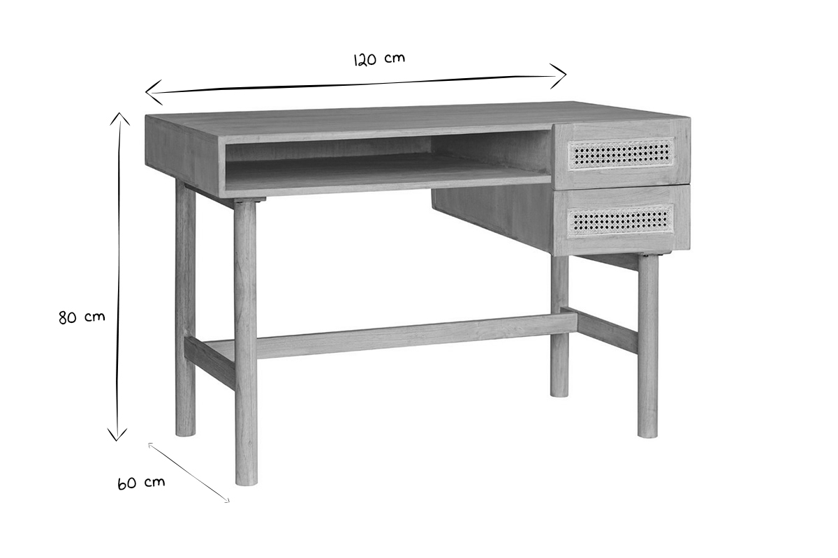 Le bureau ethnique GALINA est à associer à une confortable assise en bois clair pour parfaire la déco d'un coin travail agréable et propice à la concentration.