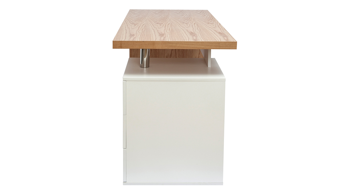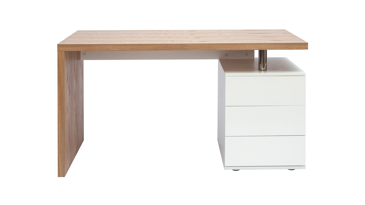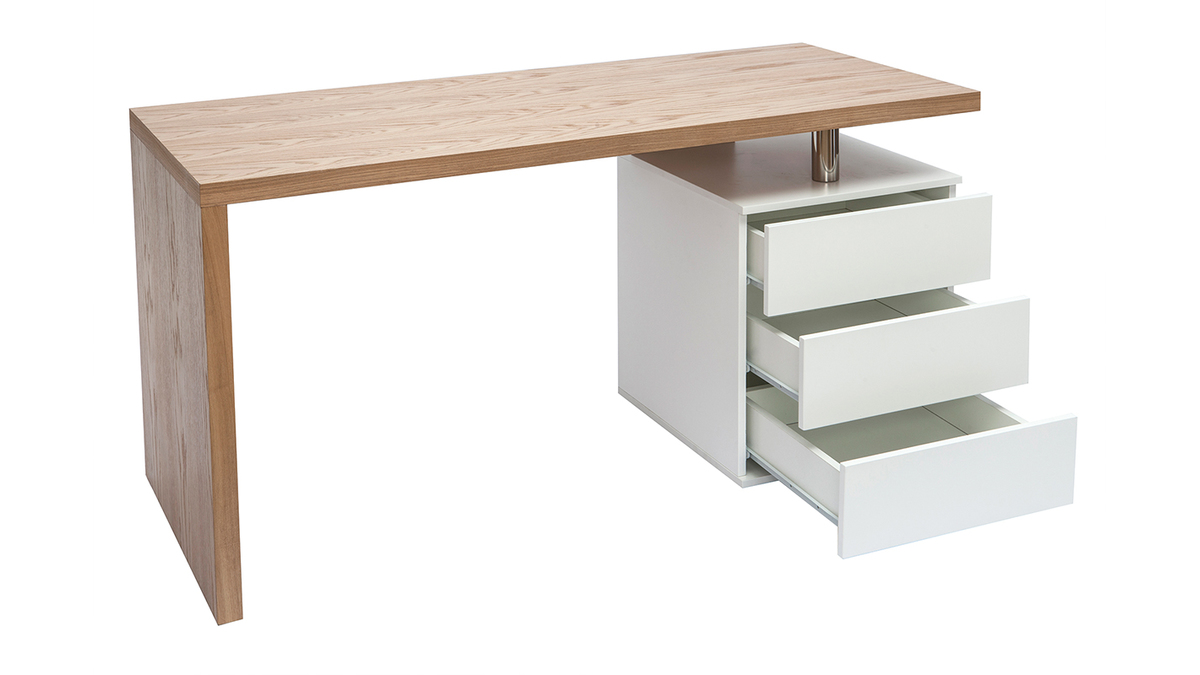 Spacieux et accompagné d'un caisson de rangement de trois tiroirs, ce bureau design est pratique et esthétique. De la place sur le plateau pour vous étaler à votre gré et de profonds tiroirs pour ranger tous vos documents et autres objets du quotidien.