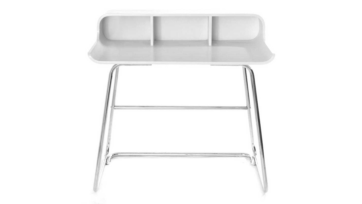 Vous allez craquer pour le bureau design SMILE V2, compact et pratique ! En contreplaqué peint fini mat (épaisseur 1.4 cm), il possède trois espaces de rangement permettant de stocker papiers et fournitures diverses.
