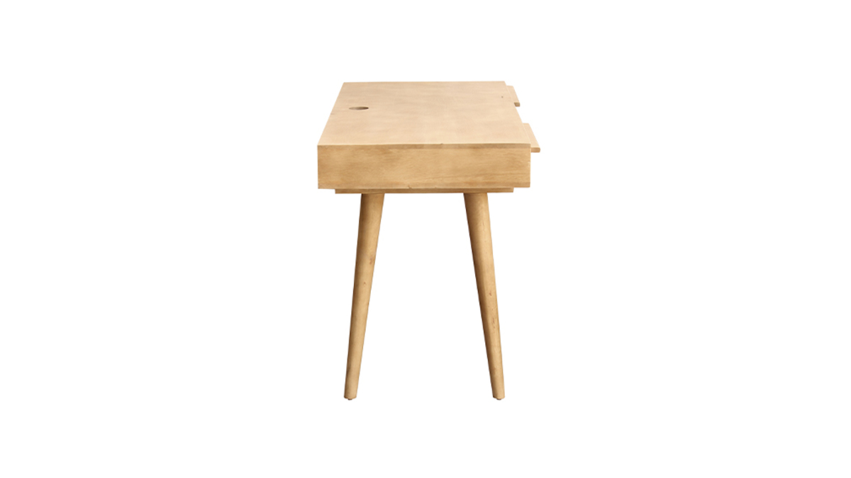 Plaisir des yeux... Mais pas que ! Son profond et large caisson (L120 x P60 x H13 cm) est réhaussé par un solide piètement. La structure est intégralement composée en manguier massif, bois plébiscité pour ses propriétés résistantes. Ce bureau original n'en est pas moins fonctionnel, il dispose de deux tiroirs latéraux et une niche centrale ouverte, parfait pour ranger vos papeteries et accessoires de travail.