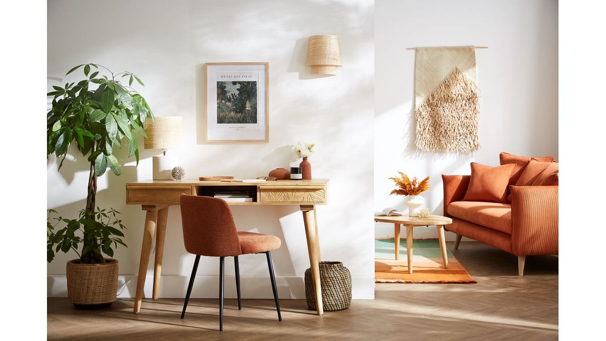 Avec le bureau en manguier massif gravé KAFFIR, Caroline MARLIAC designer Miliboo, réussi le pari de créer un cocon à l'inspiration lointaine dans votre espace de travail !