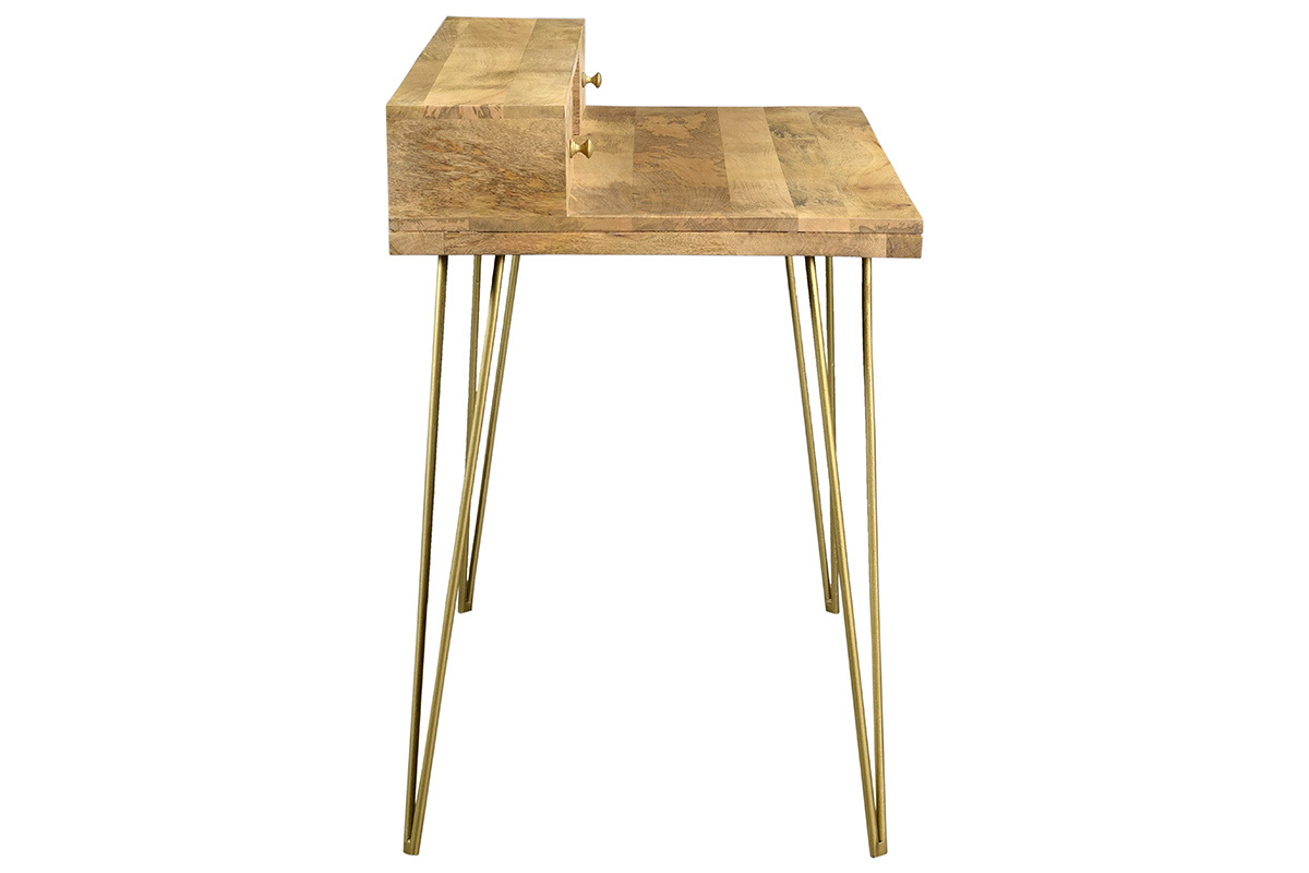 Matière : métal doré, manguier massif et dos en panneaux de fibres de bois