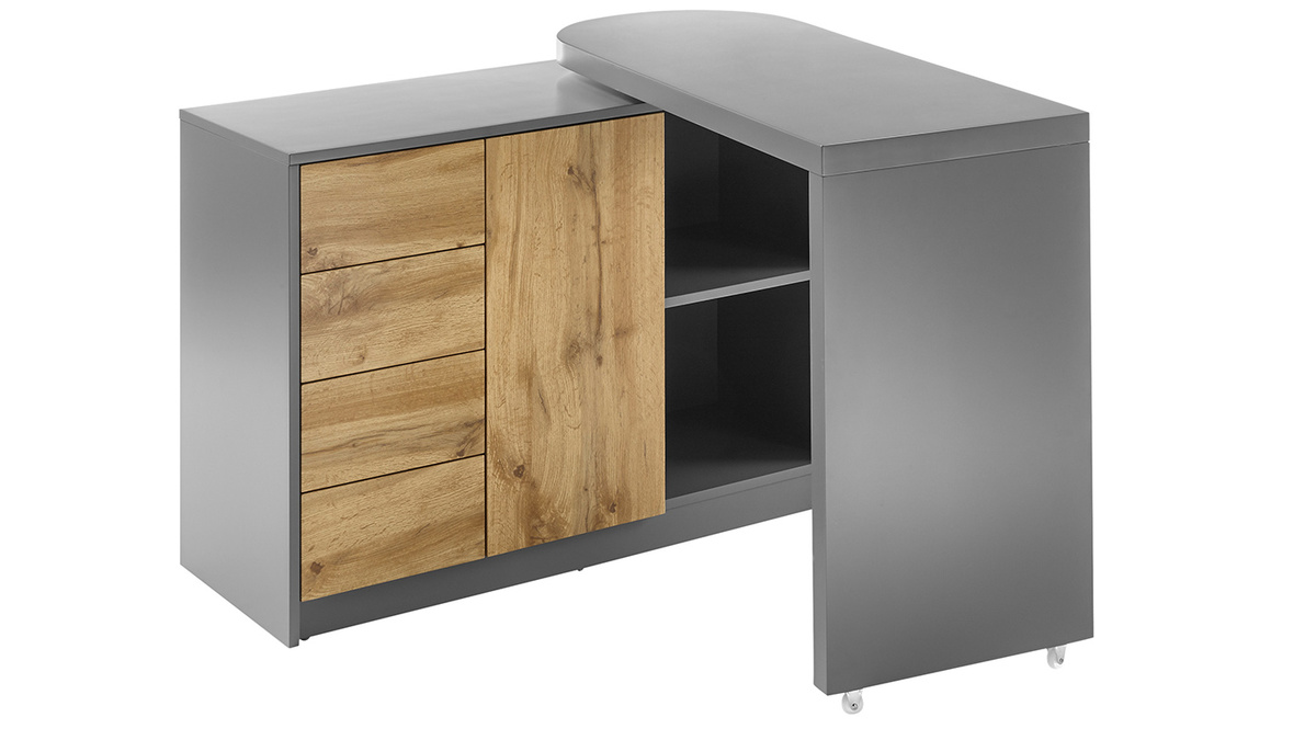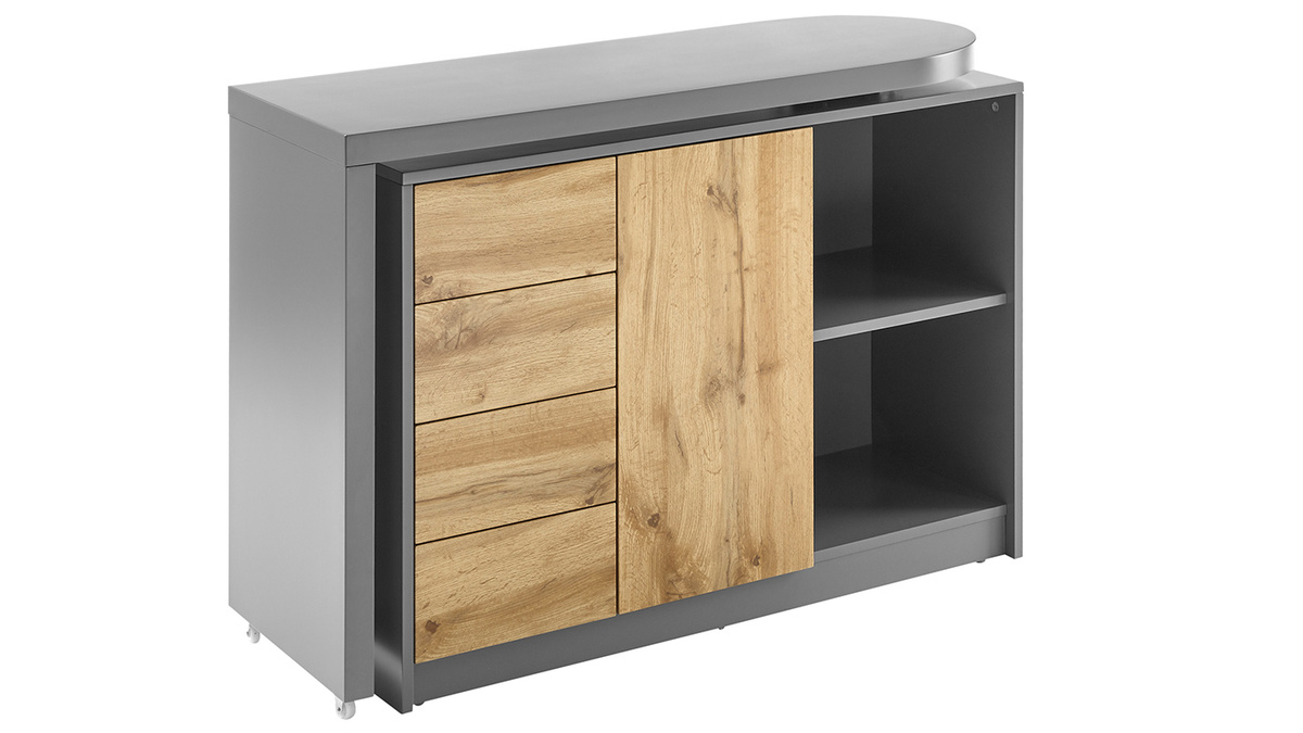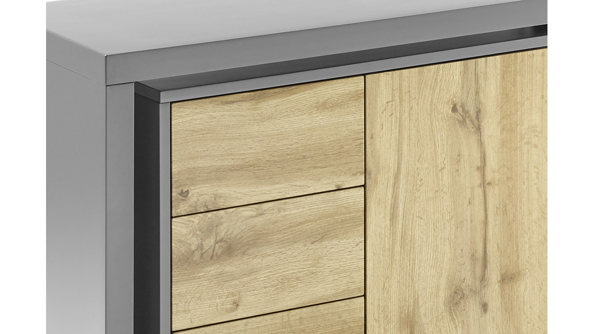 Matière : panneaux de fibres de bois décor chêne et laqués gris mat