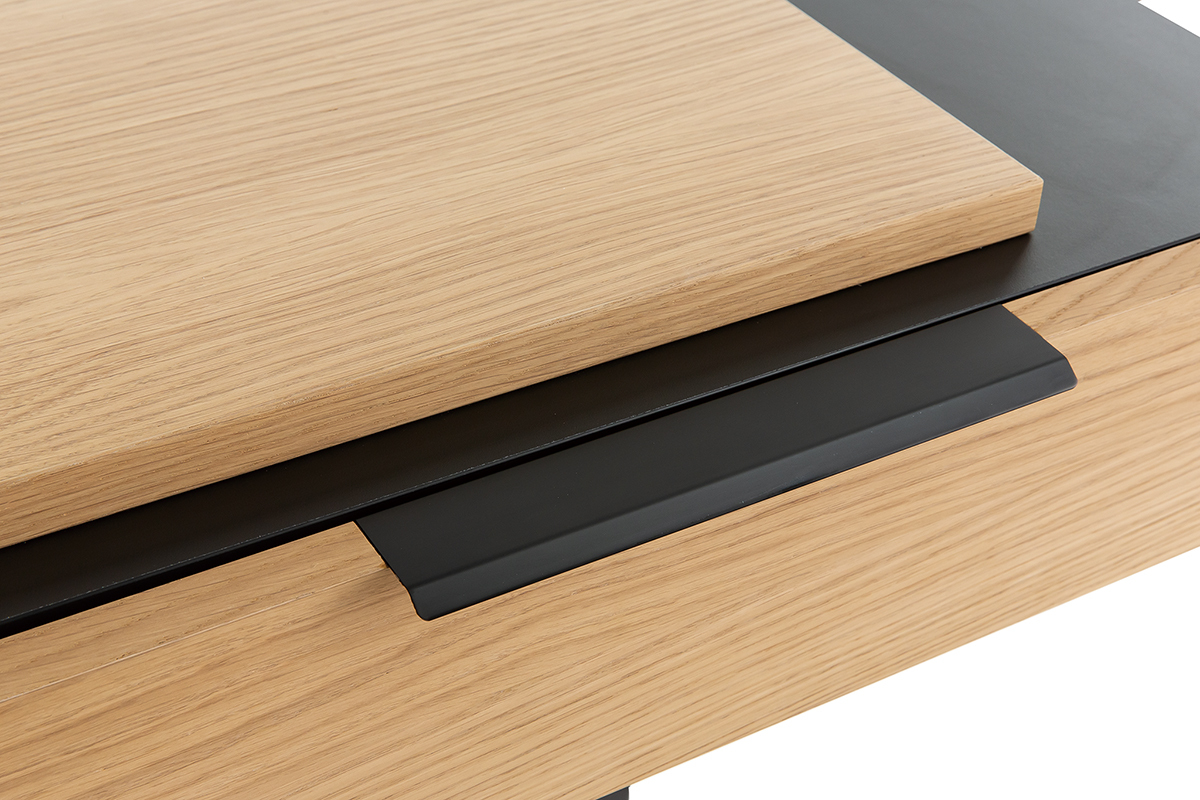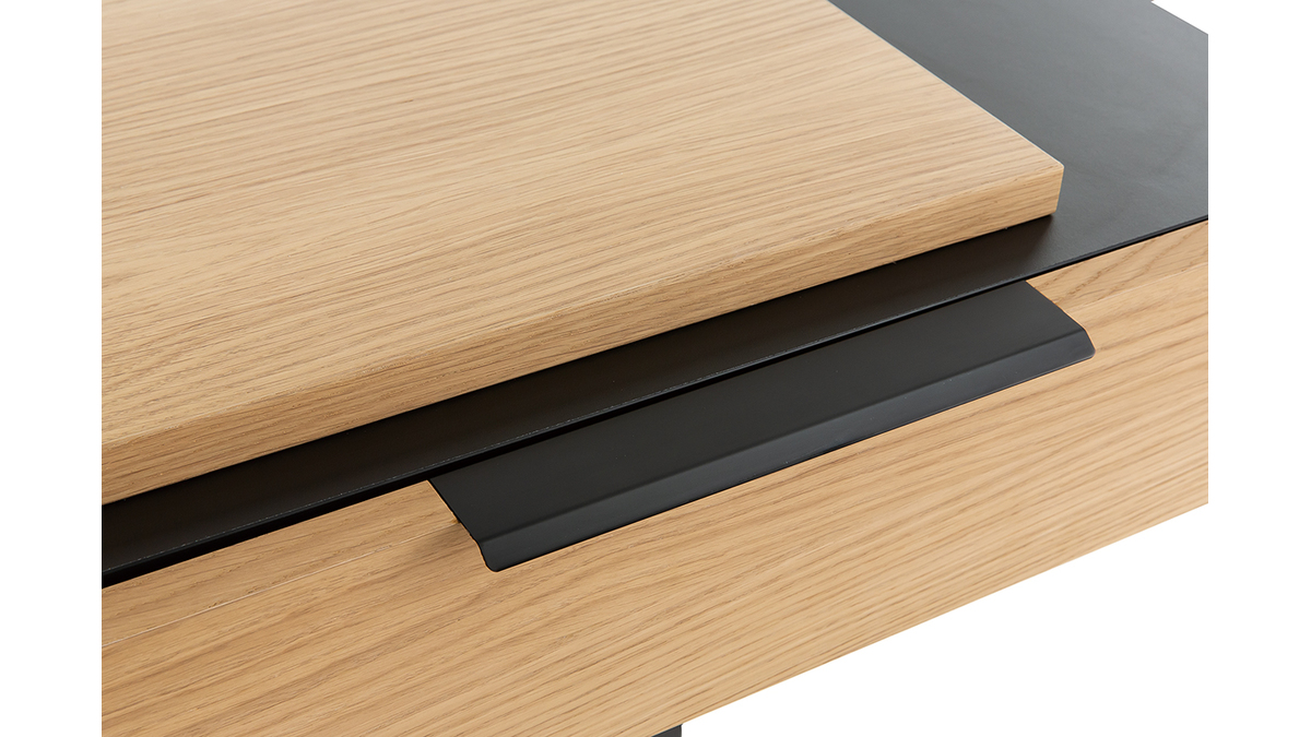 Placage chêne et métal noir se font duo complice pour offrir une pièce de mobilier très actuelle. Avec ce mélange de matières brutes, SILKA rappelle subtilement la grande tendance industrielle !