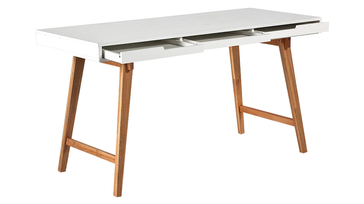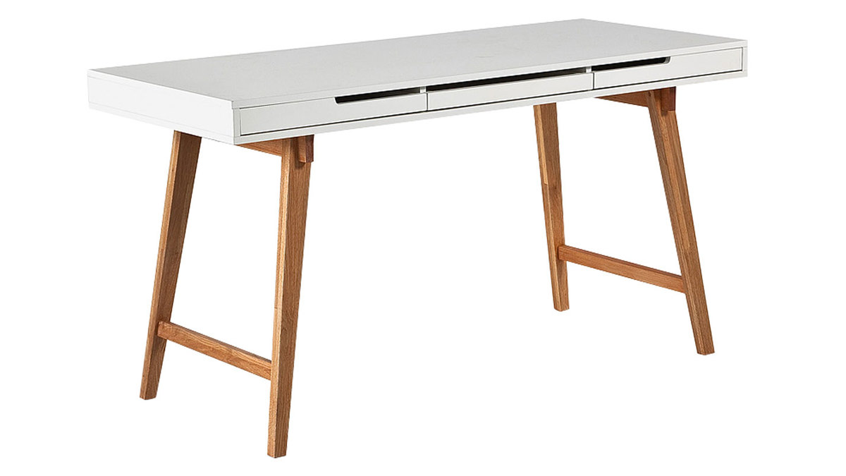 Avec son design scandinave et ses nombreux rangements, le bureau blanc et bois ESKA est le meuble idéal pour un espace de travail pratique et un intérieur tendance !
