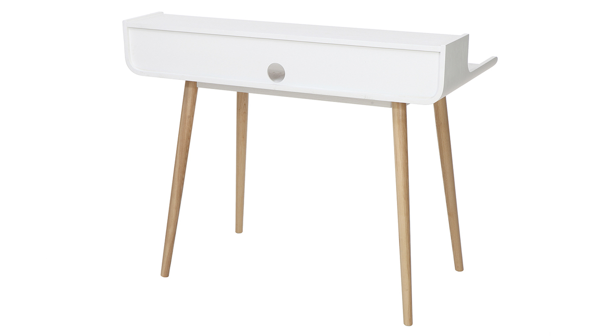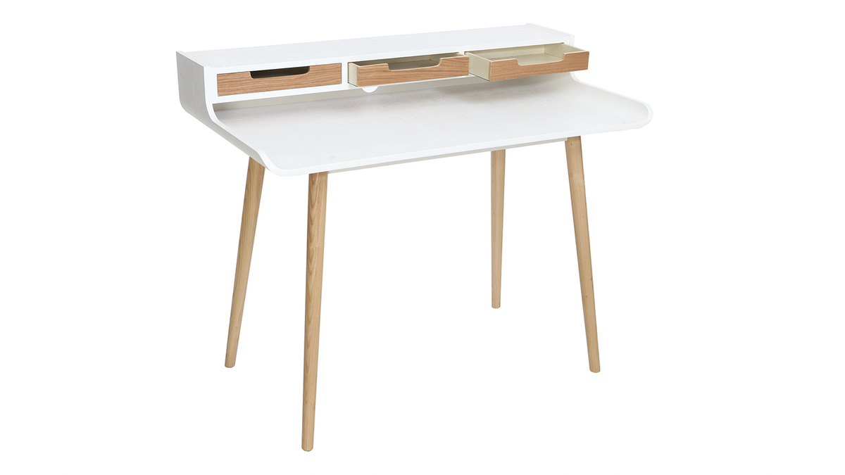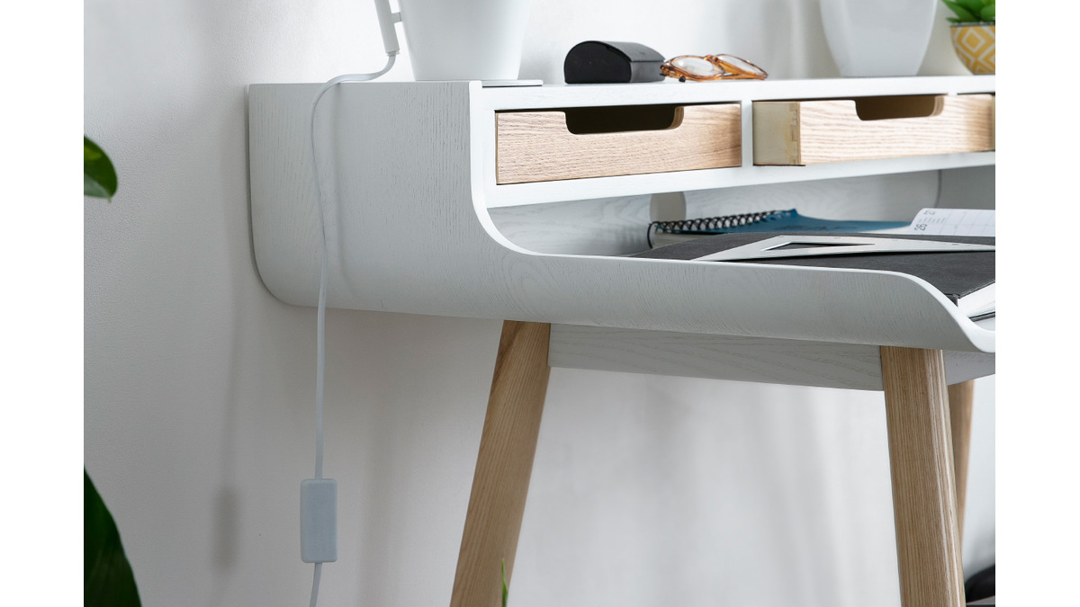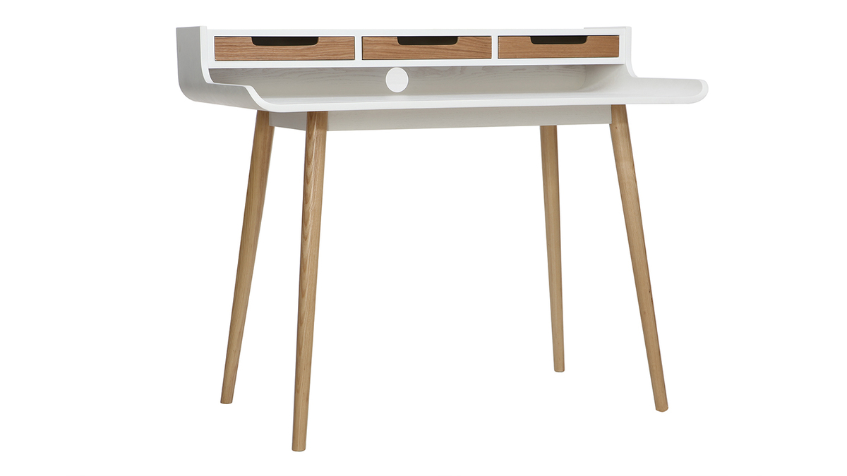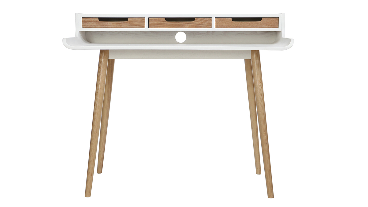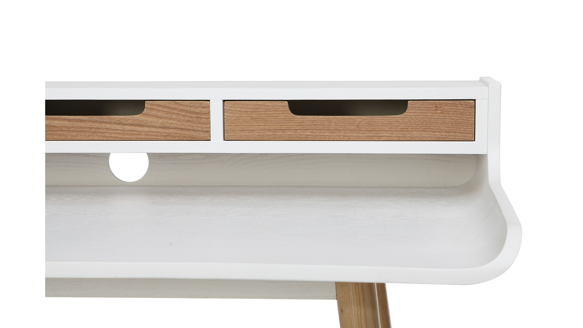 Inspiré du design danois des années 50/60, le bureau OPUS séduira tous les amoureux de mobilier scandinave avec son élégante finition frêne et ses pieds compas en bois massif très solides.