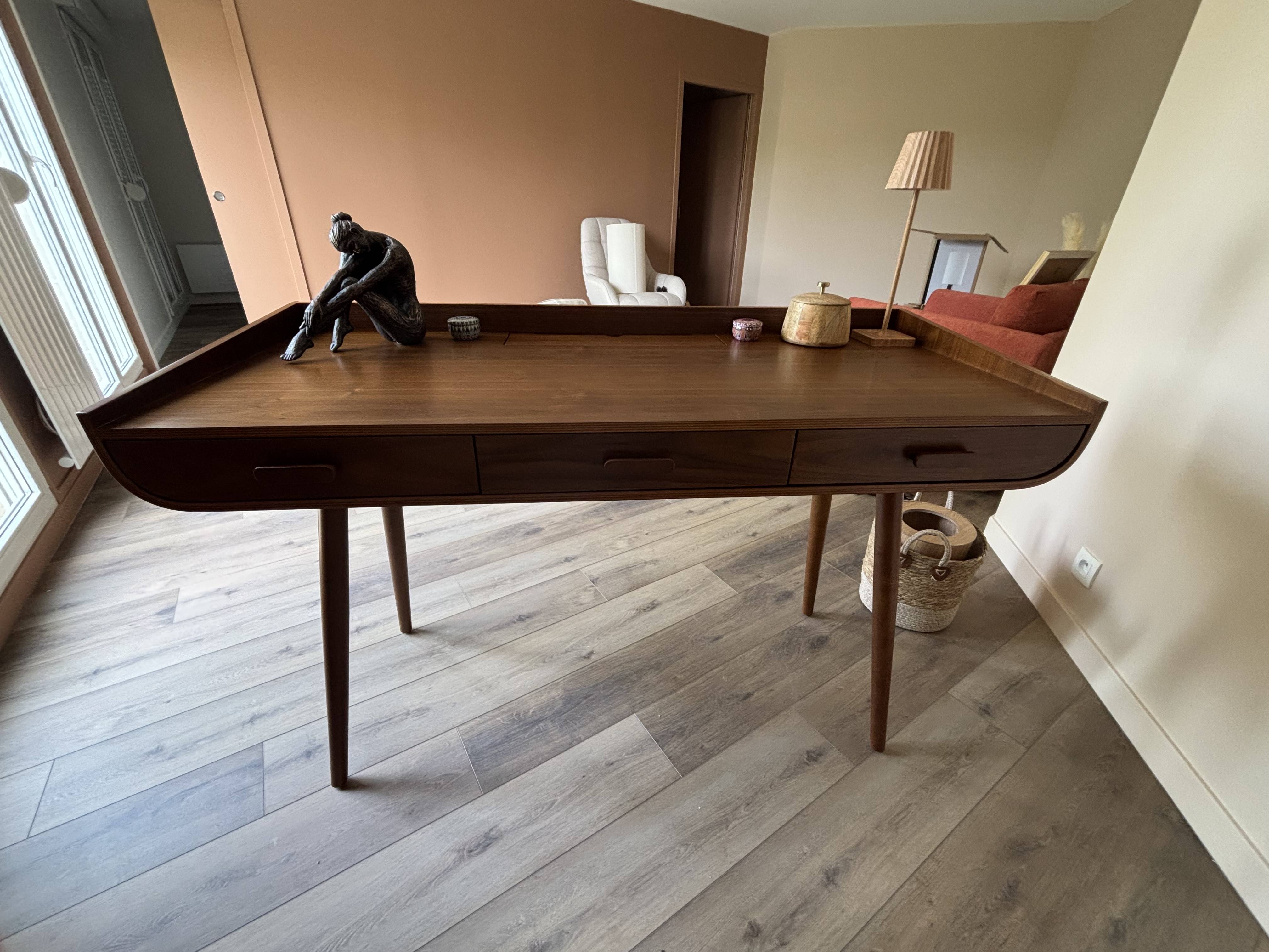 Grâce à ses deux tiroirs sous plateau et sa niche ouverte équipée d'un passe-câble, ce bureau scandinave est parfait pour optimiser l'espace de travail et créer un vrai coin bureau dans une petite pièce.