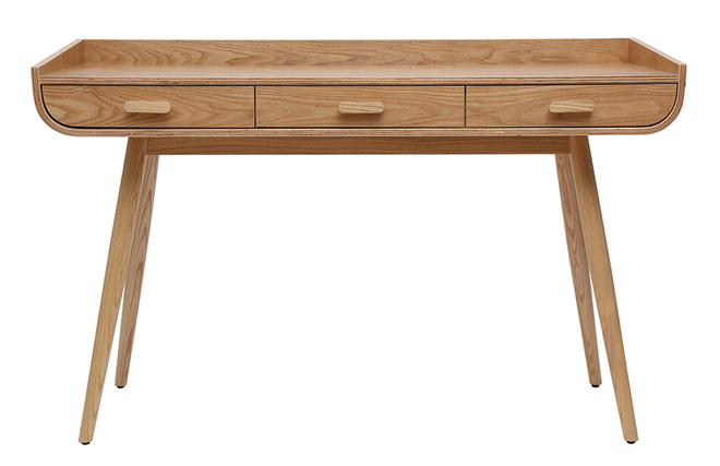 Vous souhaitez un bureau minimaliste, esthétique mais aussi fonctionnel ? HALLEN réunit tous ces critères ! Il mixe à merveille les lignes droites et les courbes pour un équilibre parfait entre modernité et élégance intemporelle. Ses pieds légèrement inclinés et sa couleur bois clair laissent apparaître les détails de la matière et rappellent le style scandinave.