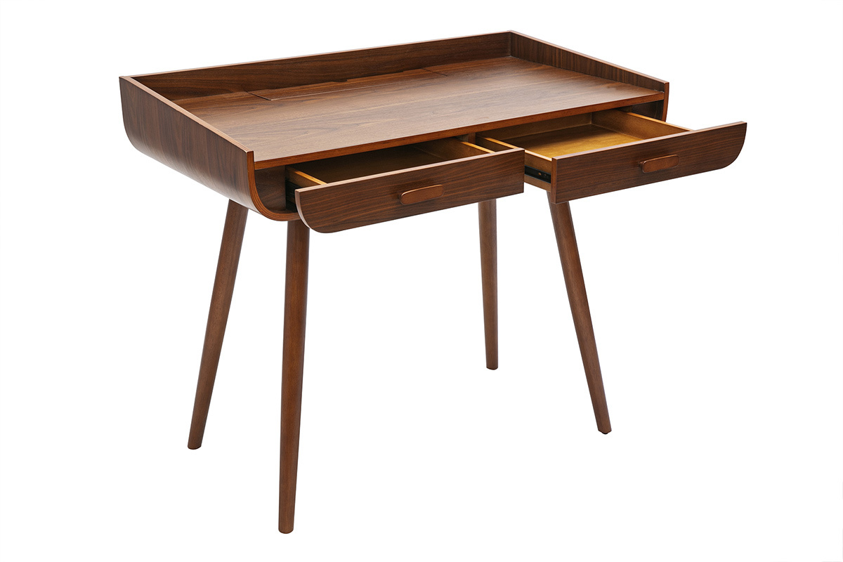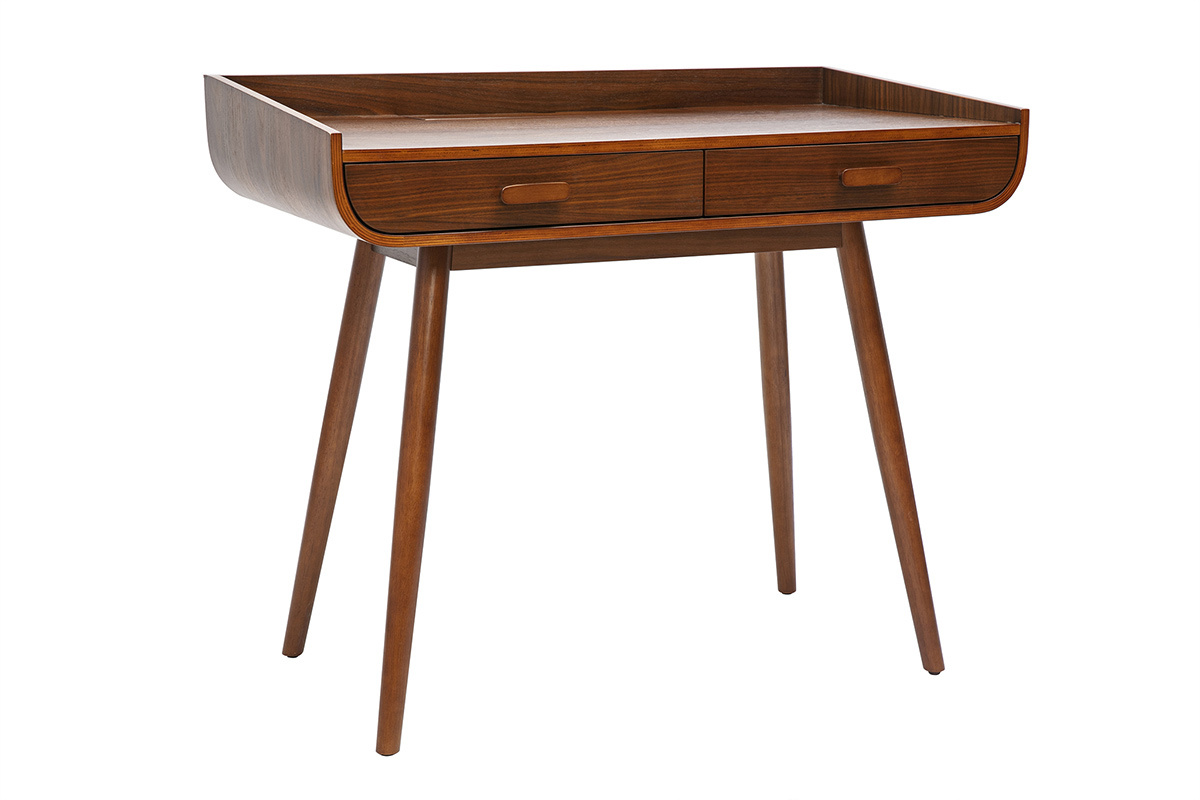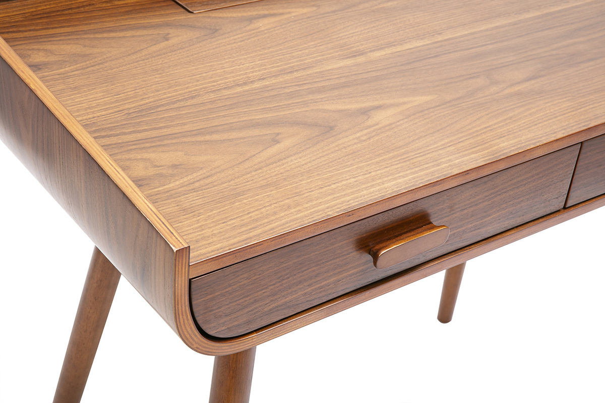 Bureau en bois foncé noyer avec rangement à monter soi-même, montage simple et rapide.