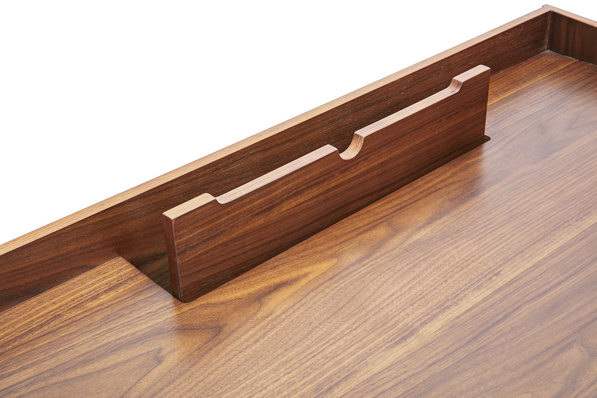 Matières : plateau en panneaux de fibres de bois placage noyer