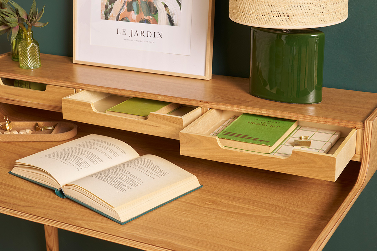 Grâce à ses lignes épurées et son design intemporel, le bureau scandinave OPUS vous permettra de créer un espace de travail chaleureux et plein de charme dans une pièce de vie ou une grande chambre.