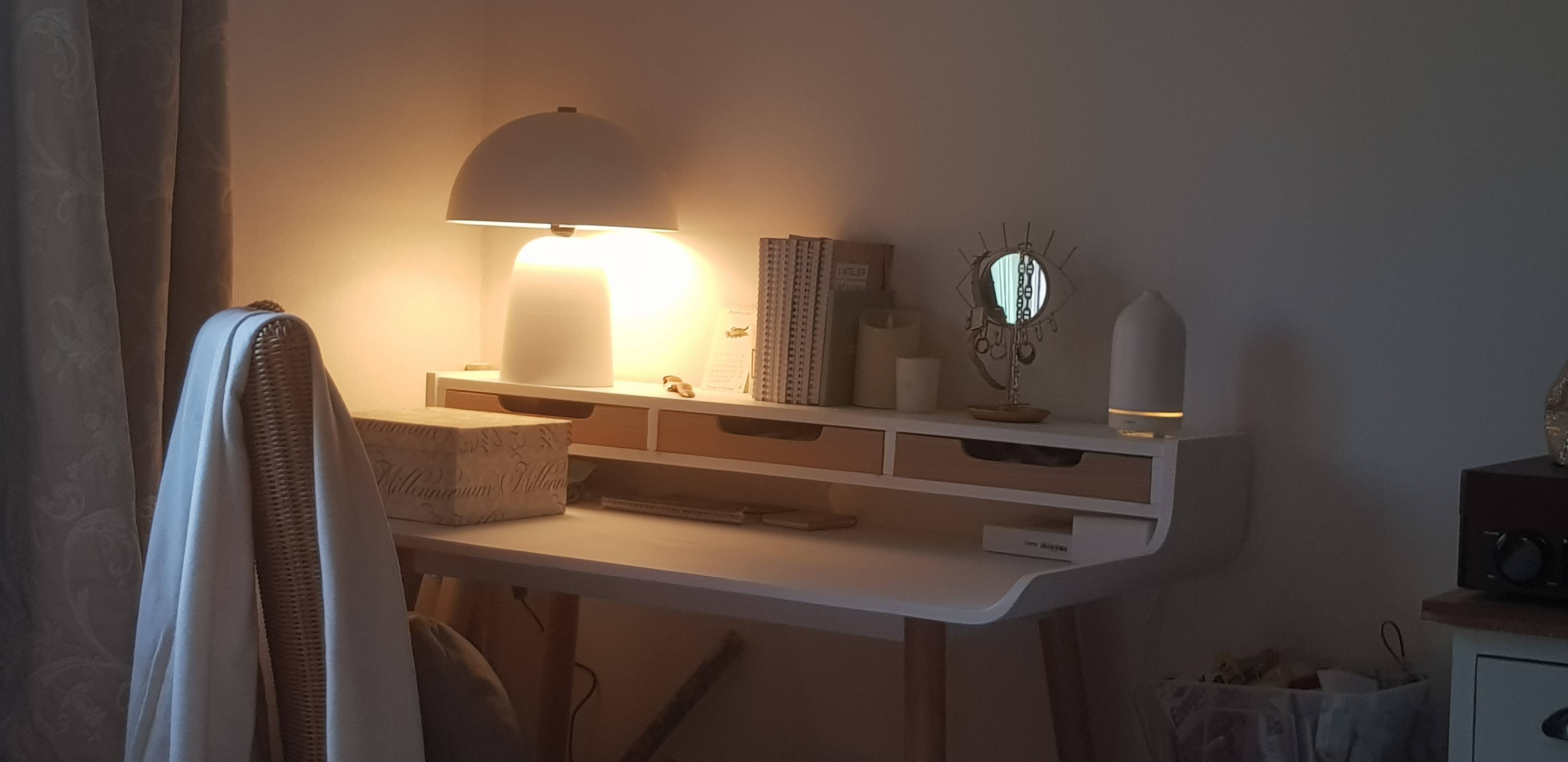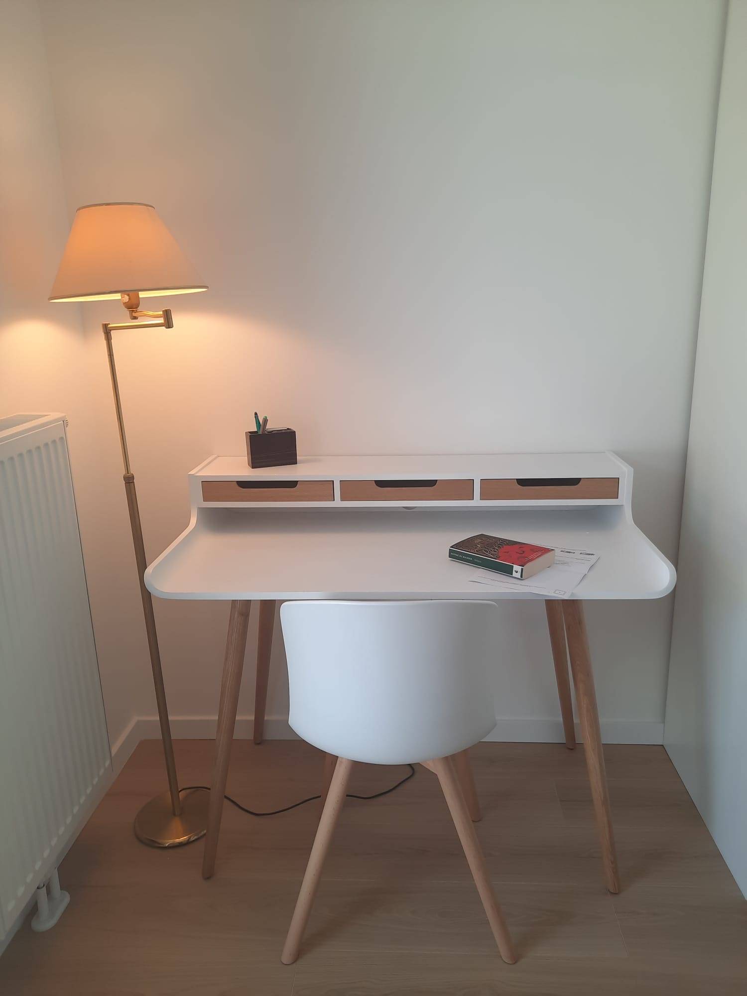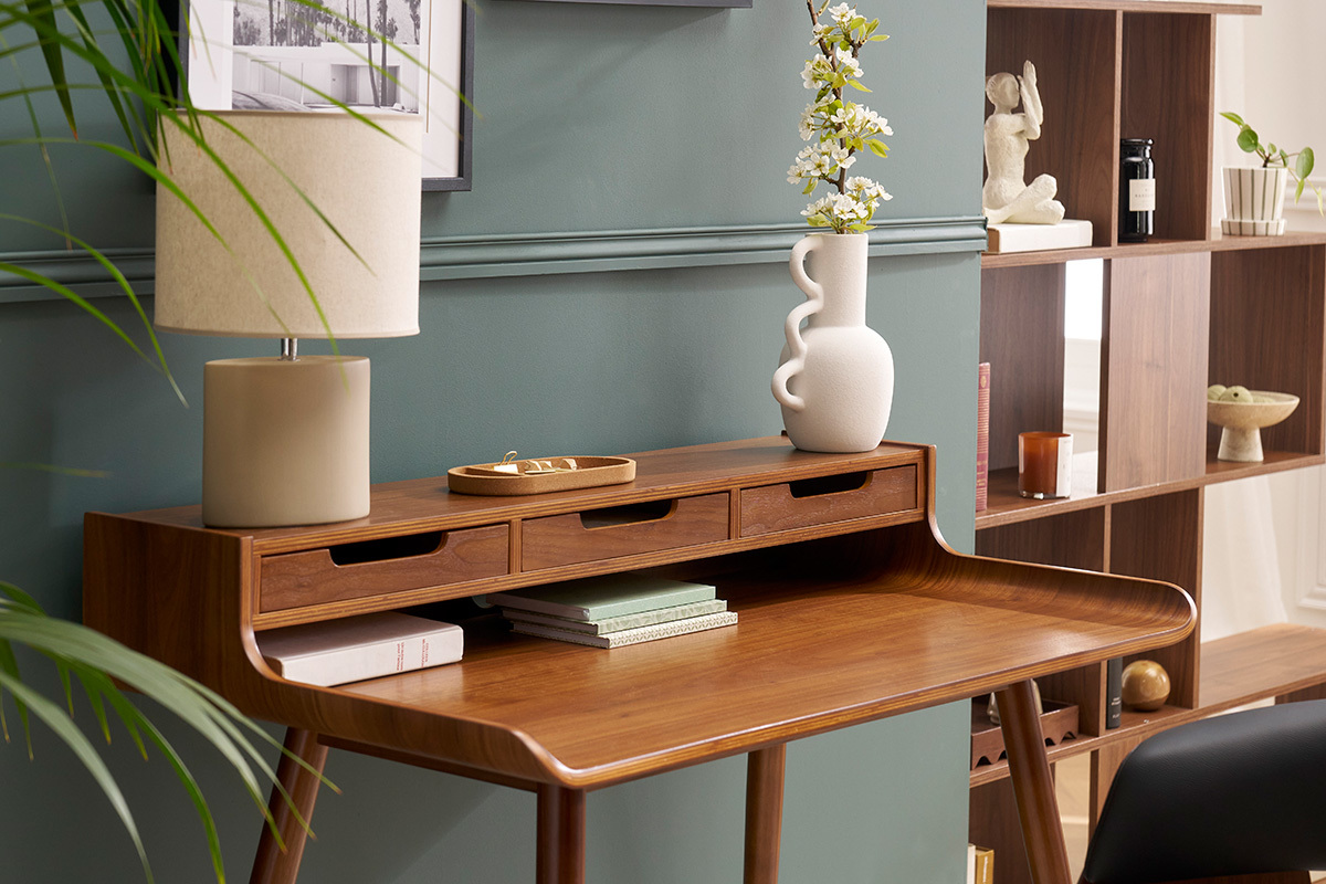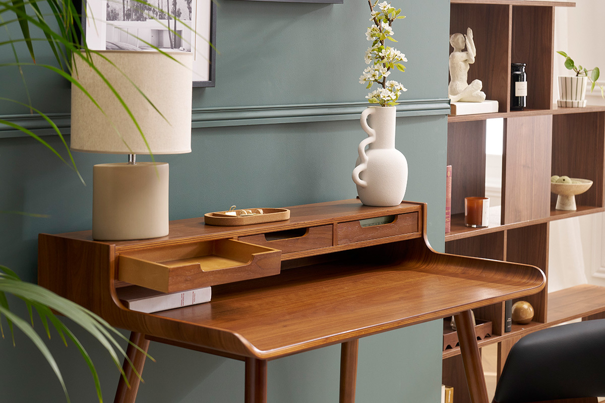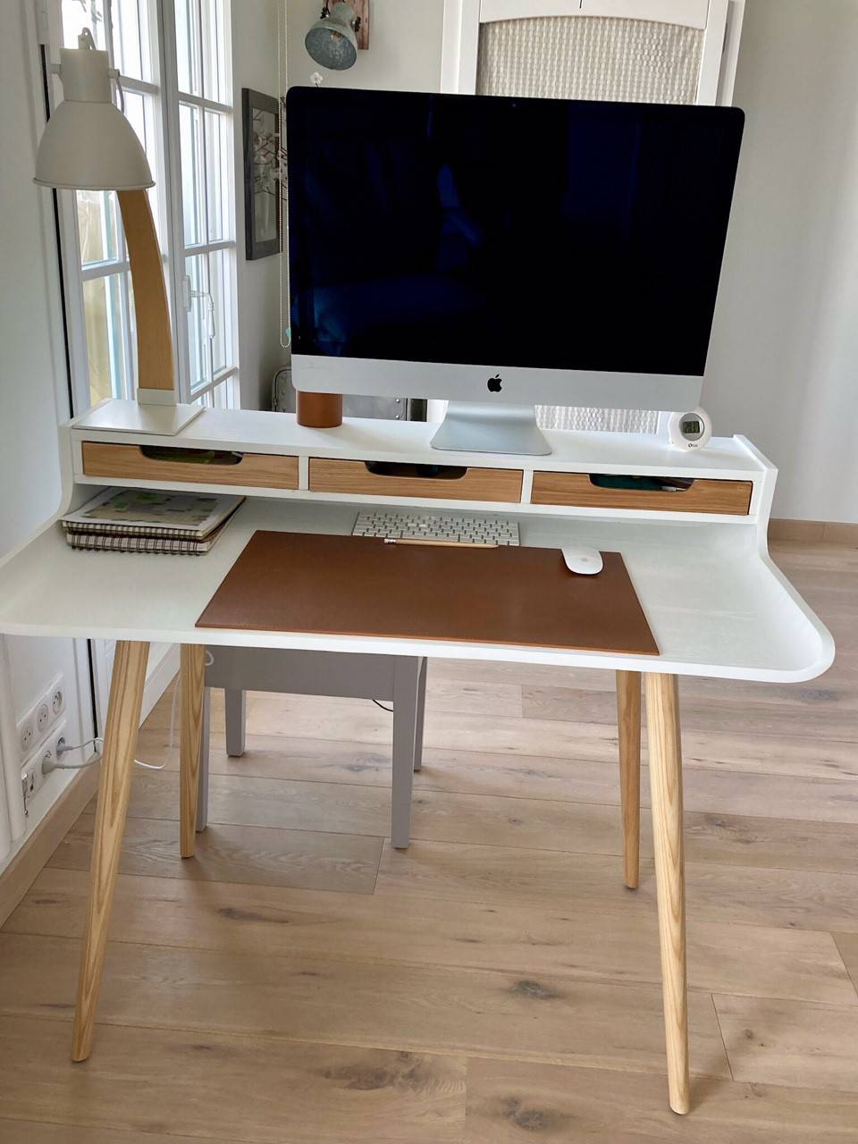Le bureau vintage OPUS existe aussi en version scandinave bois clair et blanc.