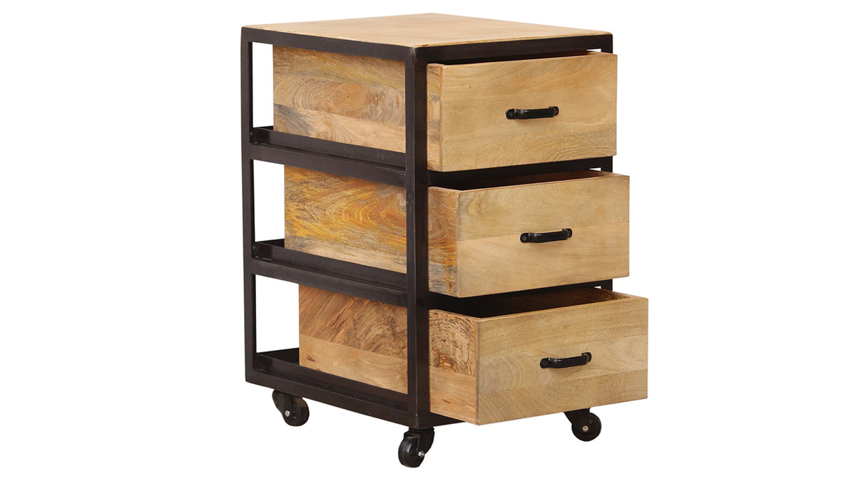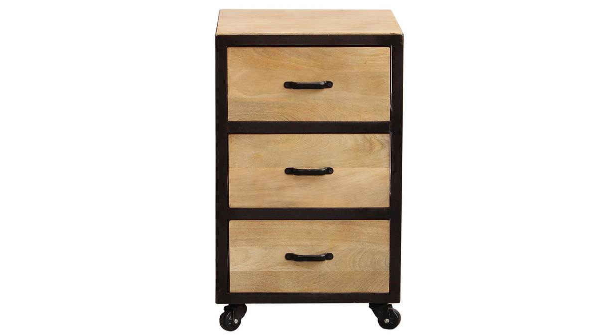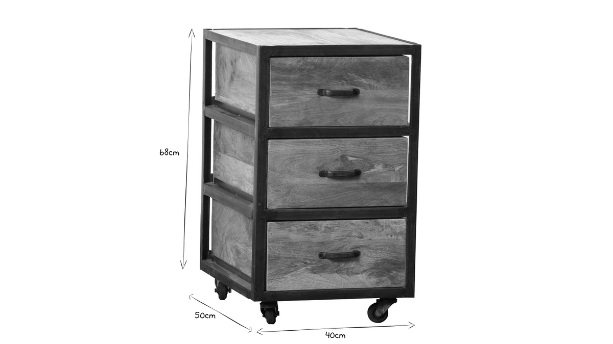 Il s'assortira parfaitement avec le bureau de la même gamme ou complètera joliment une chambre ou un séjour à la décoration industrielle. Avec ses trois tiroirs et ses quatre roulettes, ce petit meuble de rangement est un concentré de praticité permettant ainsi d'optimiser l'espace avec style.