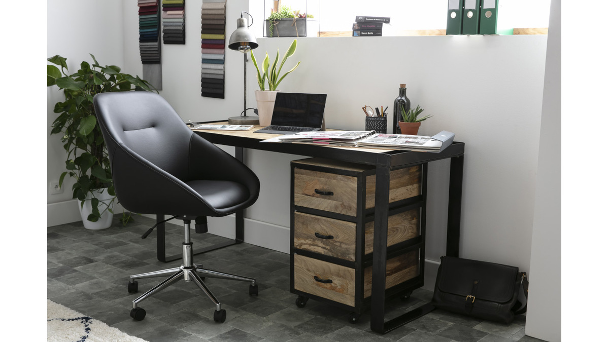 Conçu en exclusivité par Miliboo, doté d'un design industriel respecté dans ses moindres détails, le caisson de bureau à roulettes INDUSTRIA sera votre meilleur allié au quotidien ! L'alliance de l'acier brut et du manguier massif, le contraste des matières et des couleurs confèrent à ce modèle un style unique qui en fait déjà un futur classique.