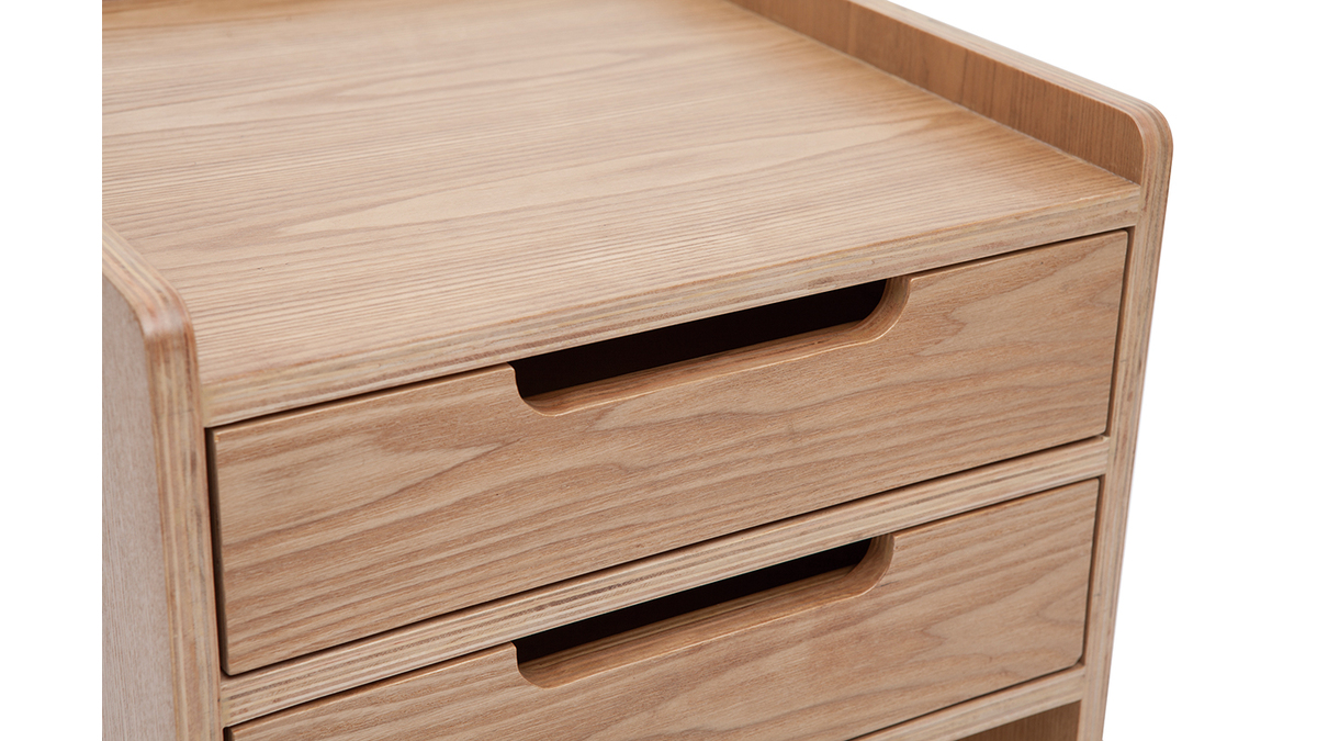 Tout comme le bureau de la même collection, OPUS est un meuble intemporel au joli design scandinave. Il affiche un total look bois avec structure en contreplaqué frêne et des tiroirs en frêne massif. Épuré et chaleureux, ce caisson de bureau sera la touche finale de votre espace de travail.
