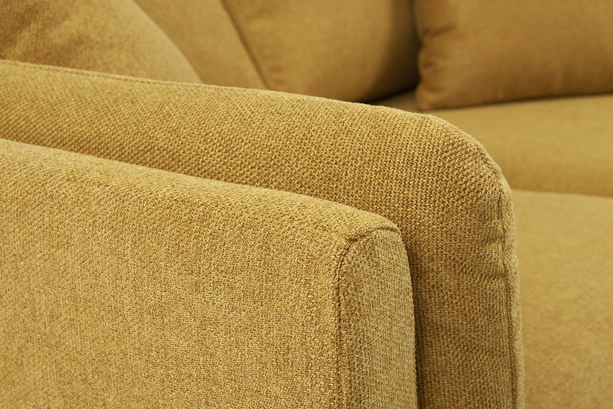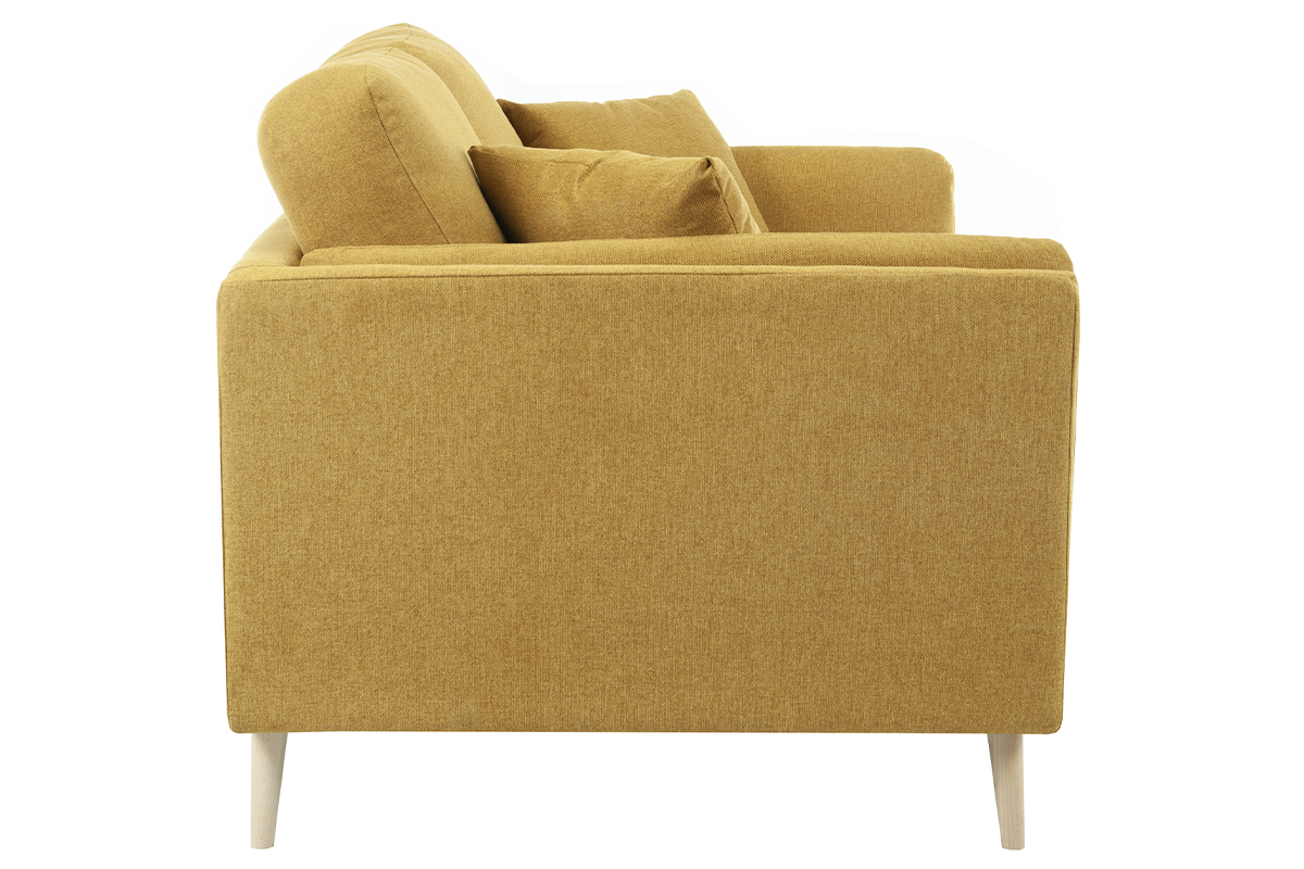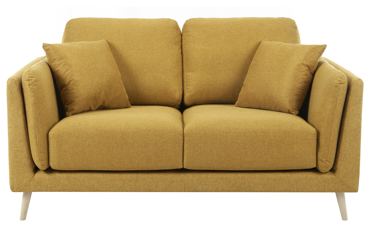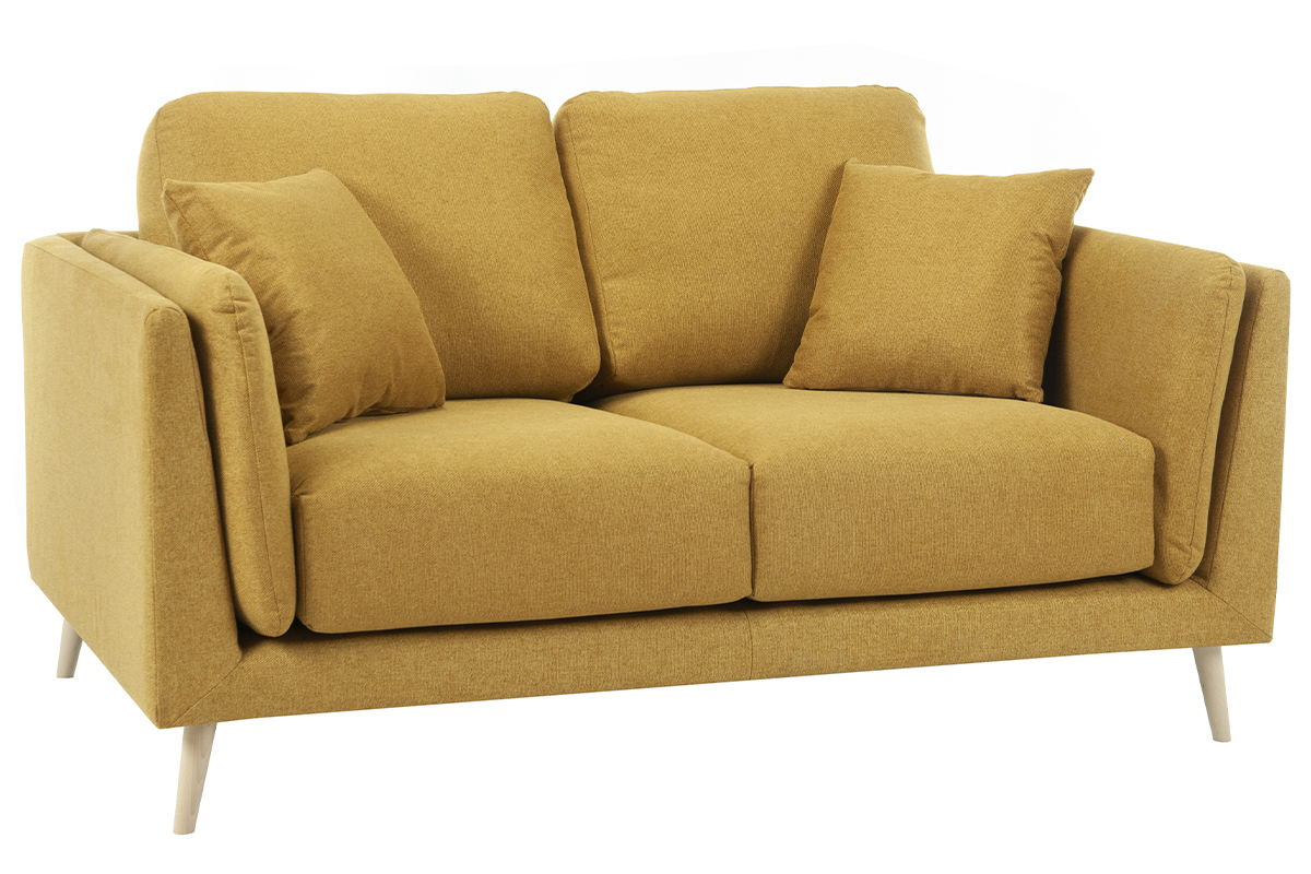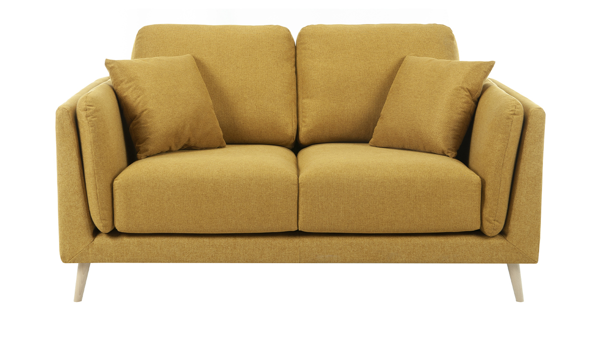 Dans l'esprit couture, ce canapé 2 places en tissu jaune cumin présente des finitions soignées et un style d'une élégante simplicité. Sa silhouette épurée, son sublime revêtement en tissu jaune cumin (100% polyester) et son piètement en bois massif reflètent toute l'élégance d'un canapé moderne allié à l'attrait cosy d'un canapé scandinave. Un résultat dans l'air du temps !
