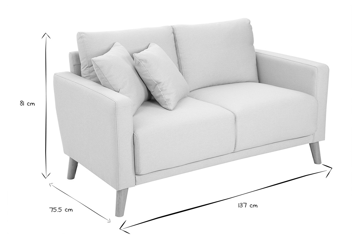 Avec ses dimensions compactes de L137 x P75.5 x H81 cm, ce canapé 2 places est parfaitement adapté aux petits espaces tout en conservant un design accueillant et chaleureux. Son tissu beige clair, à la fois sobre et lumineux, s’intègre facilement à tous les styles de décoration, du scandinave au contemporain en passant par le minimalisme moderne.
