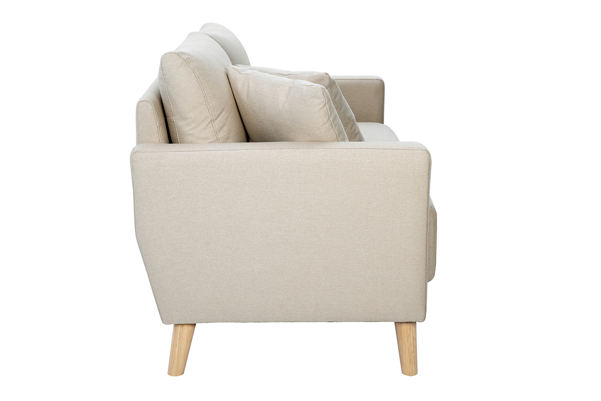Le canapé beige MUNIK séduit d’emblée par ses lignes épurées et sa silhouette équilibrée. Ses accoudoirs droits et légèrement rembourrés offrent un confort optimal tout en renforçant l’esthétique structurée du modèle. Le piétement en bois clair massif ajoute une note naturelle et nordique, créant un contraste subtil avec l’assise pour un rendu visuel harmonieux. Grâce à sa finition soignée et son allure intemporelle, ce canapé est un véritable atout déco dans un salon, une chambre d’amis ou un bureau.