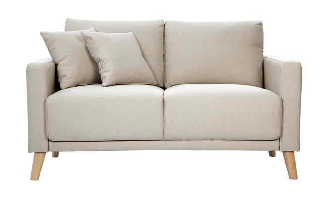 Canapé beige 2 places, livré prêt à monter. Assemblage simple et rapide.