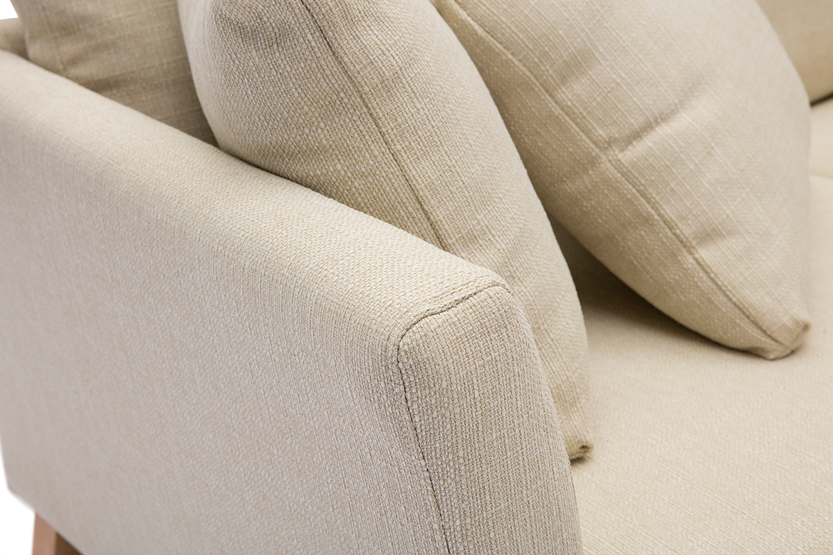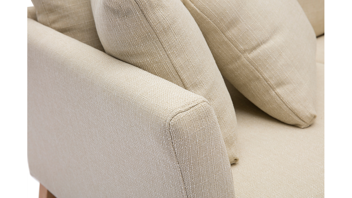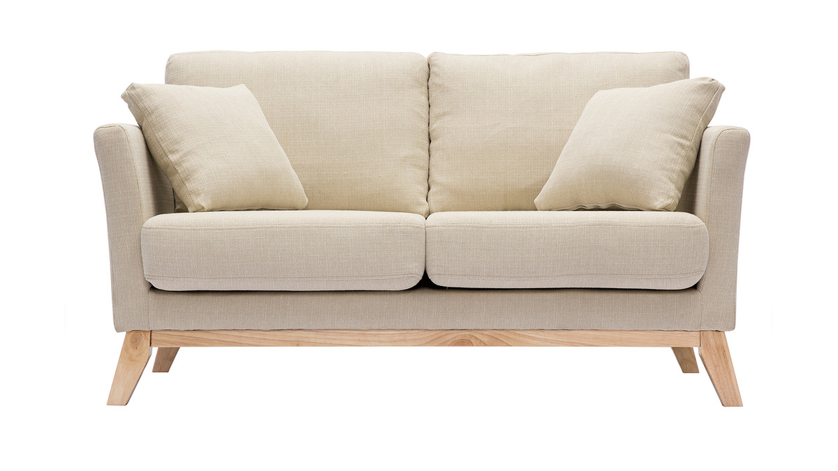 Avec son revêtement en polyester, son piètement en bois clair et son design épuré, ce petit canapé s'inscrit dans la tendance nordique. Son tissu beige en fait une assise dans l'air du temps qui se mariera avec une décoration d'inspiration scandinave, bohème ou moderne.