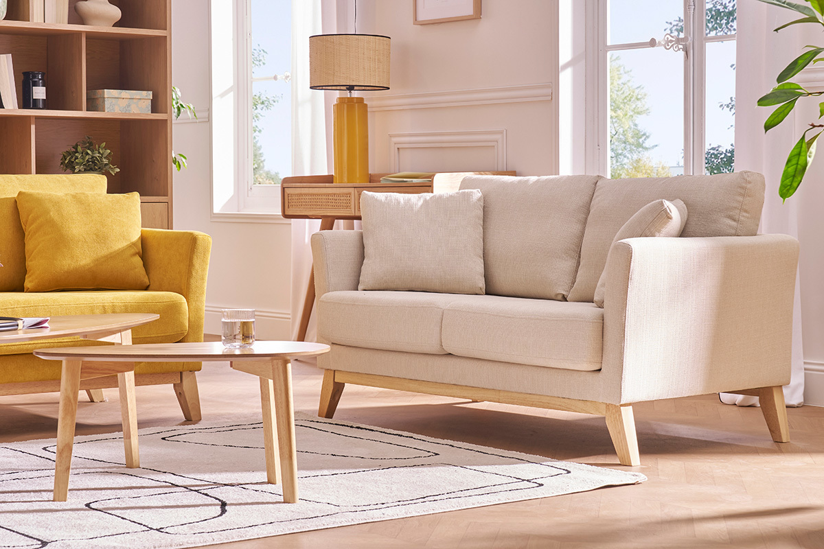 S'aménager un vrai coin salon, avec des assises confortables et tendance, c'est souvent un véritable casse-tête quand on a peu de place. Grâce à ses petites dimensions, son design scandinave et son coloris intemporel, le canapé 2 places OSLO est l'allié des petits espaces qui ont du style !
