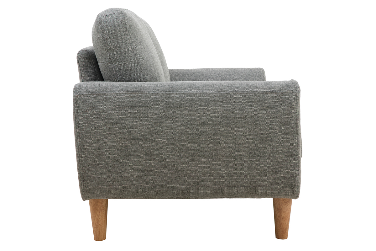Ce canapé en tissu gris et bois clair est simple à installer. Il vous suffira d'enclencher le dossier et de visser les quatre pieds à la structure.
