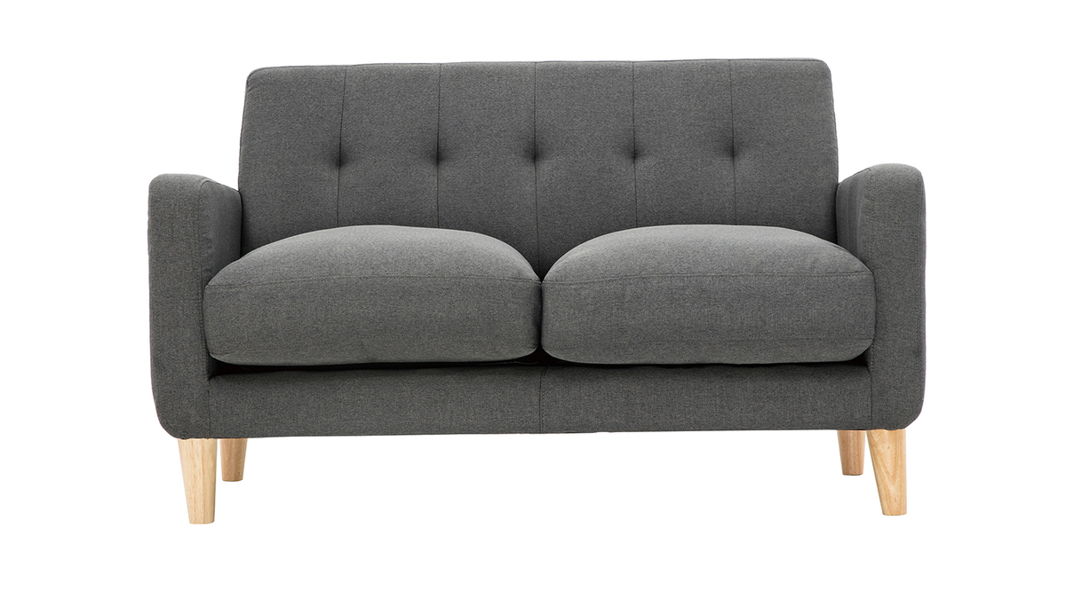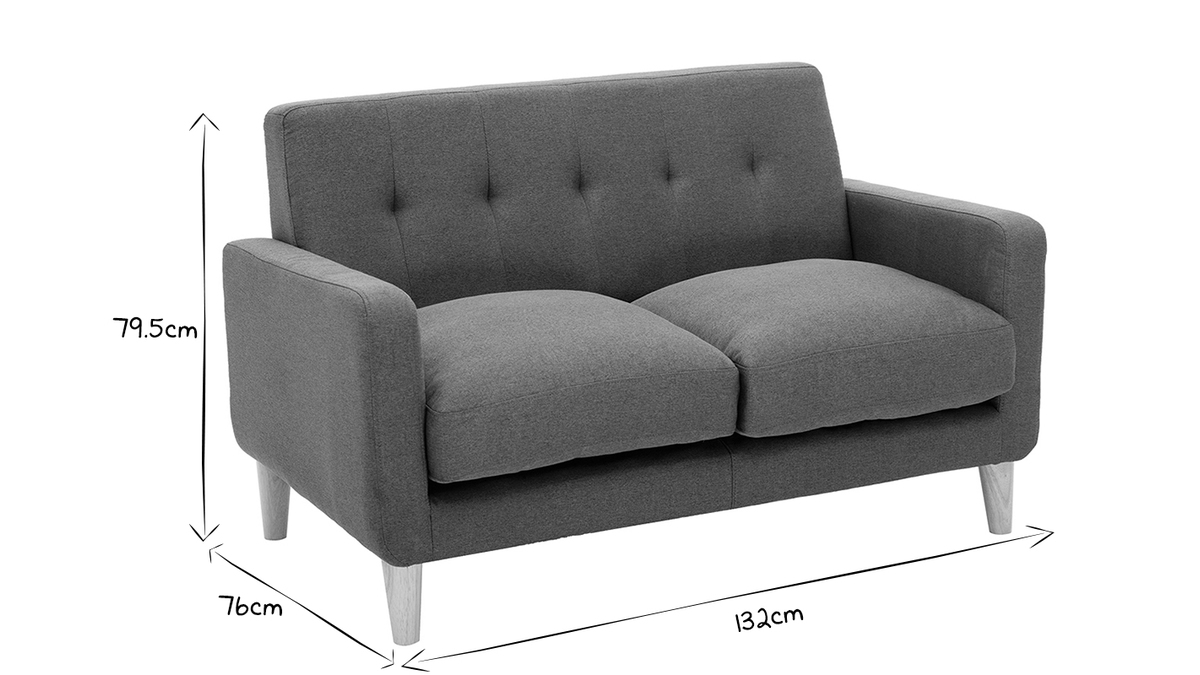 Avec le canapé LUNA, les studios et les petits séjours s'équipent d'une assise gain de place ultra déco. Ses jolies courbes et ses coussins moelleux transforment le salon en véritable petit cocon où il fait bon se détendre. Ce mini canapé aux dimensions L132 x P76 x H79.5 cm associe un chaleureux revêtement tissu gris foncé (100% polyester) et un piètement en bois massif. Il rassemble les essentiels pour un petit salon cosy.