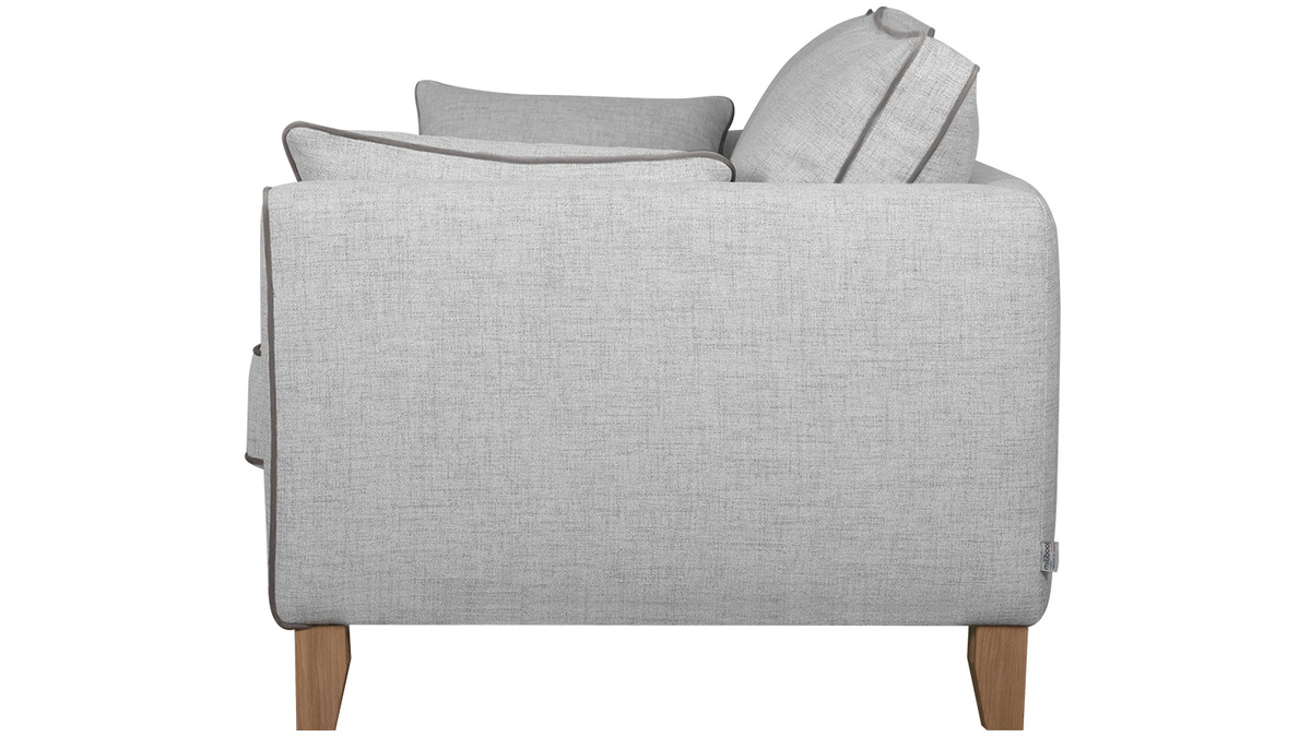 Une ligne simple et légèrement rétro dessine les contours de ce canapé 3 places 100 % français. Derrière ce design épuré, on retrouve un choix de matériaux solides et des finitions soignées qui font la réputation des créations françaises. Le canapé HARRISON est fabriqué à partir d'une structure en pin massif et de pieds en hêtre. Assise, dossier et accoudoirs sont recouverts d'un magnifique tissu gris chiné. L'association du bois massif et d'un revêtement texturé unique fait de ce canapé, un siège de salon gris au style affirmé.