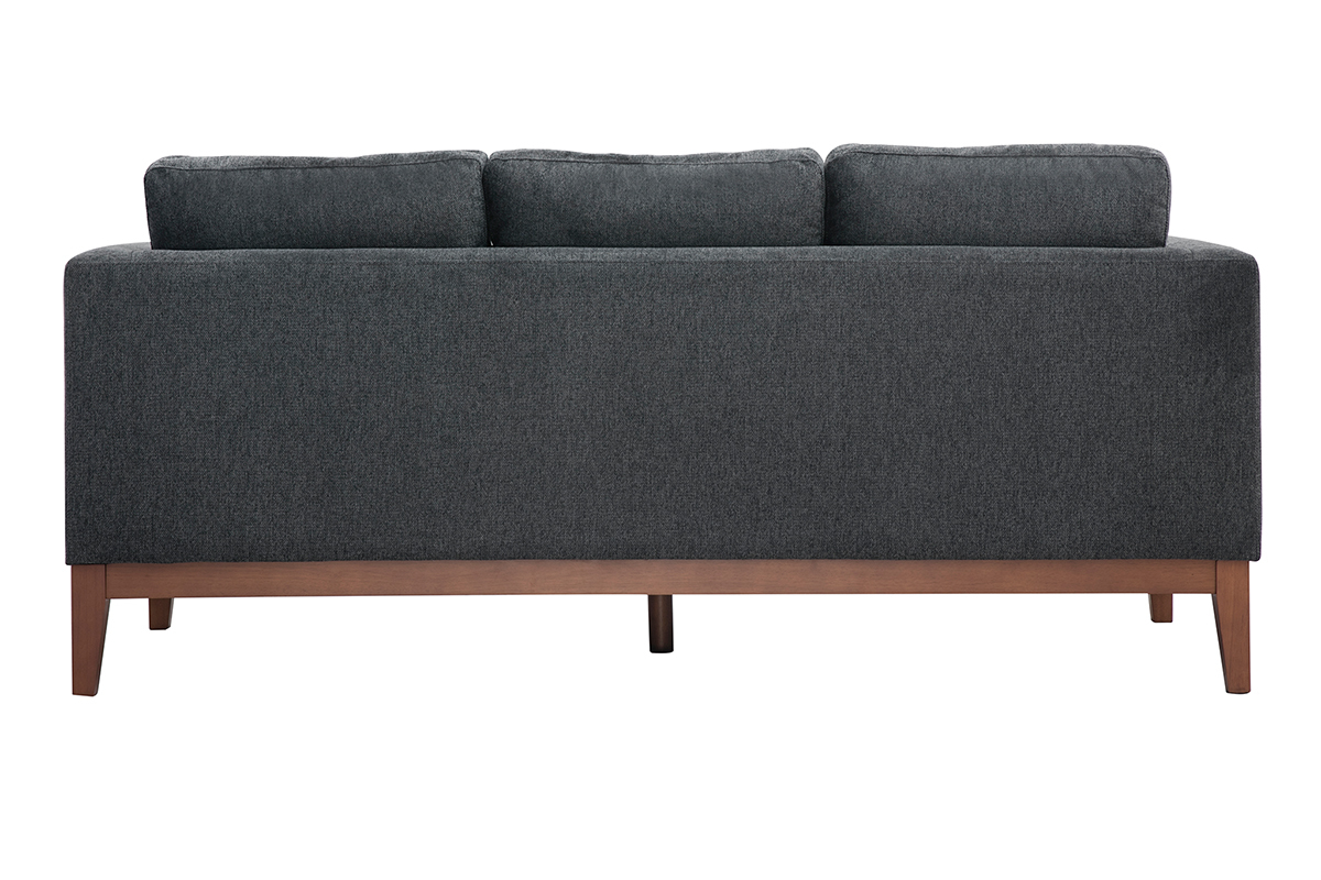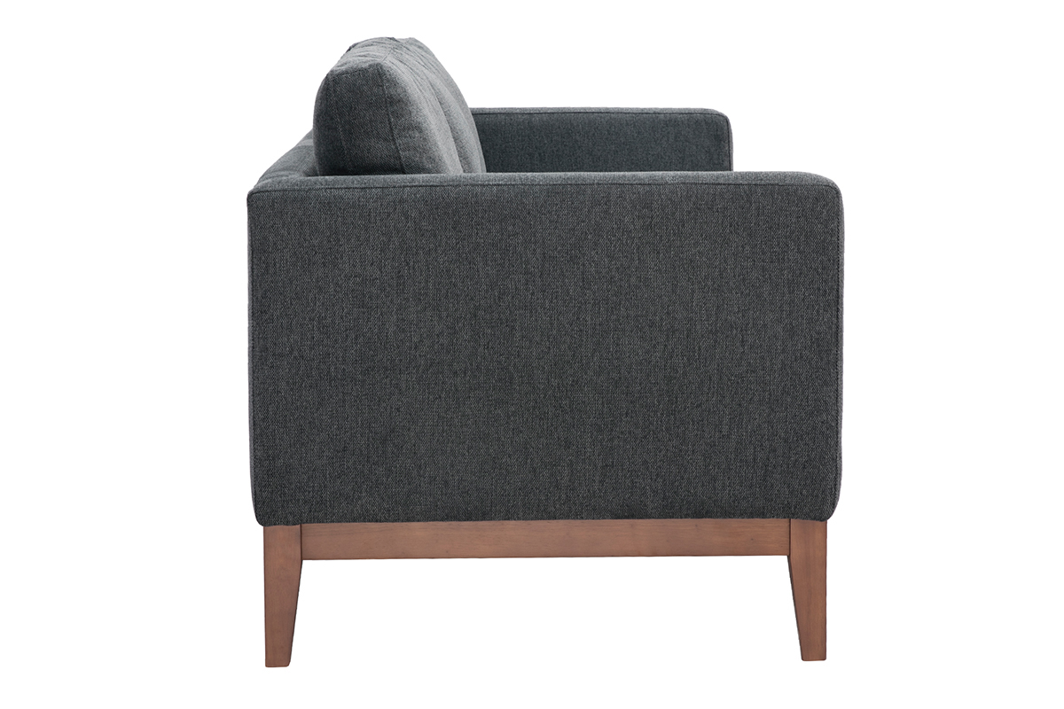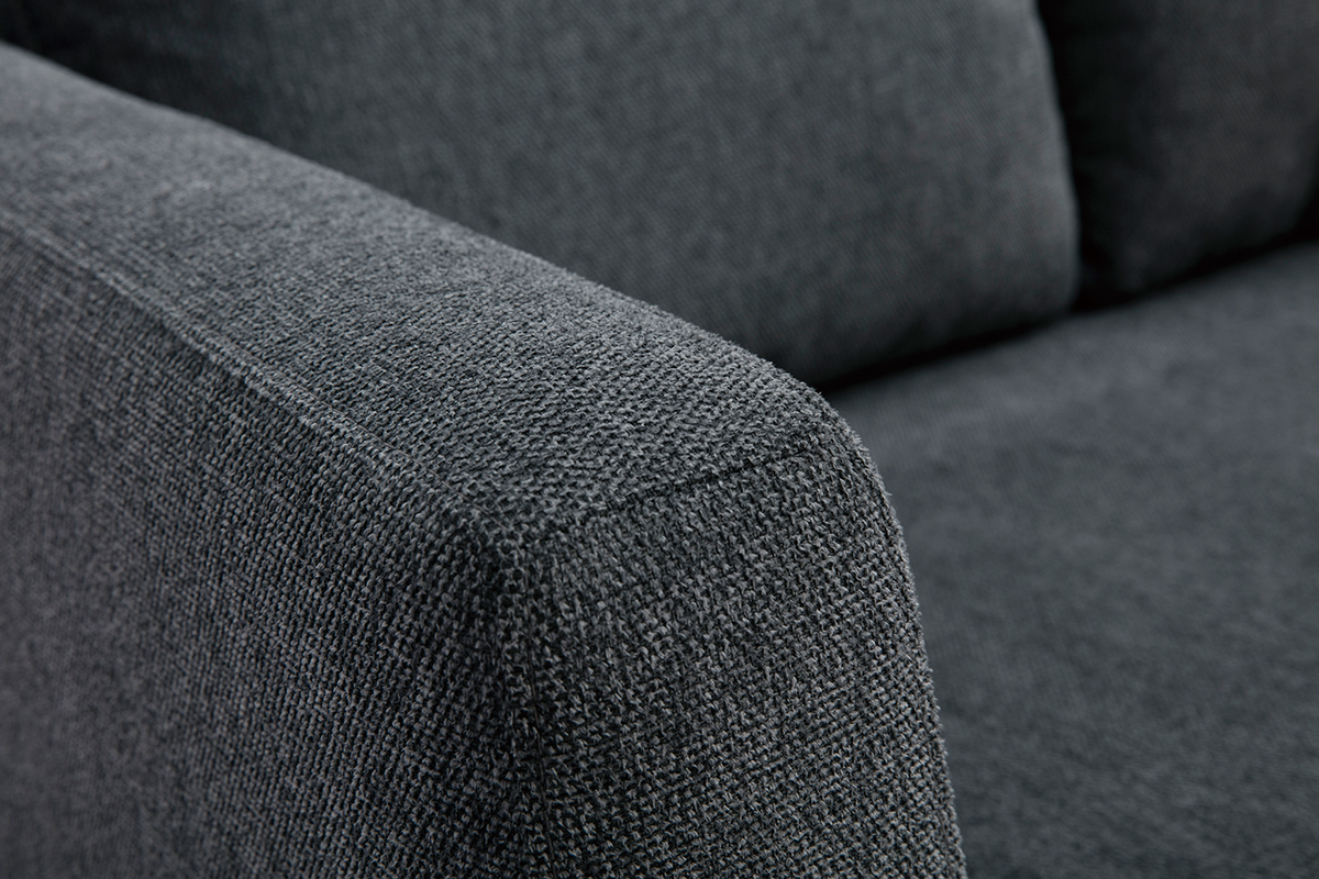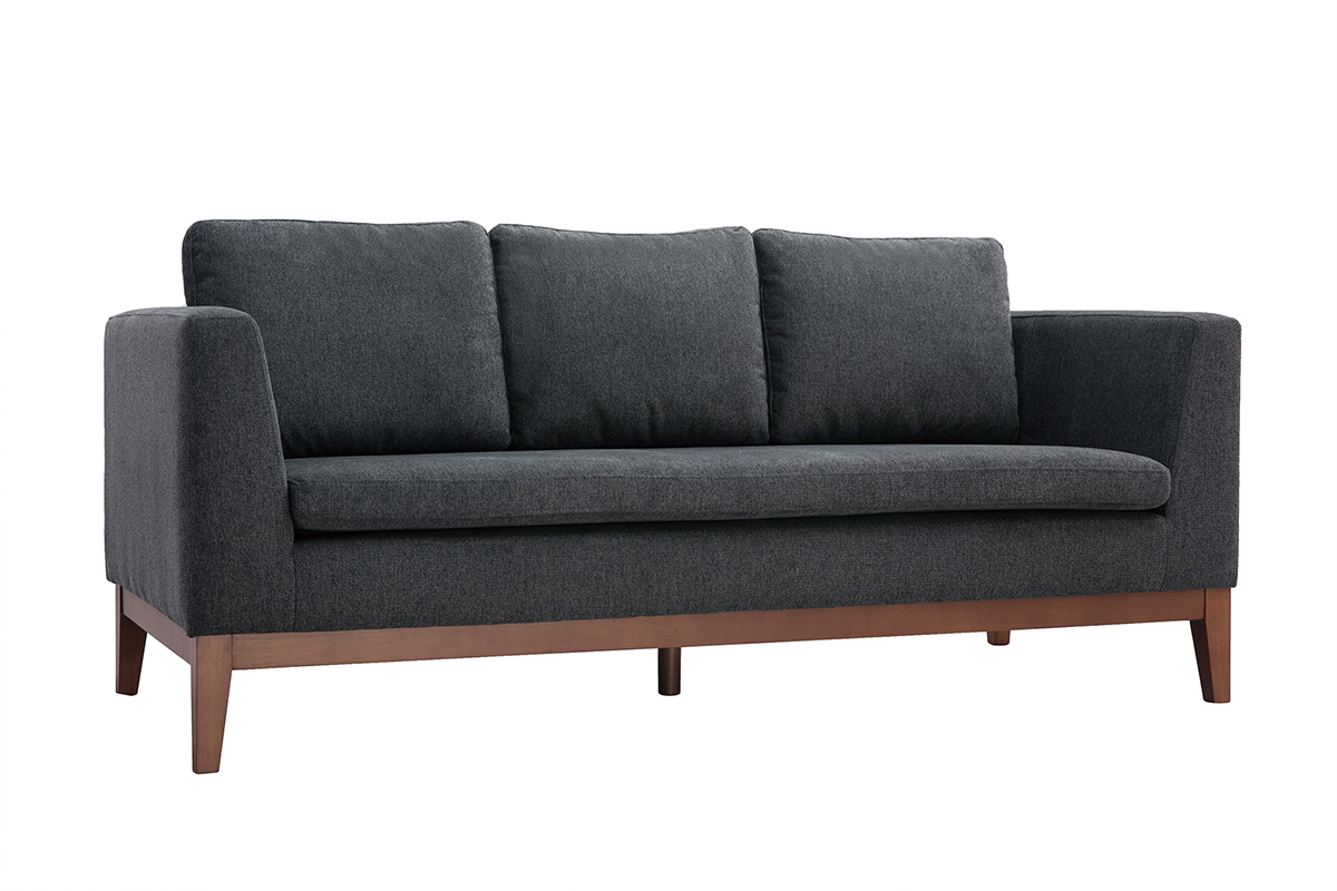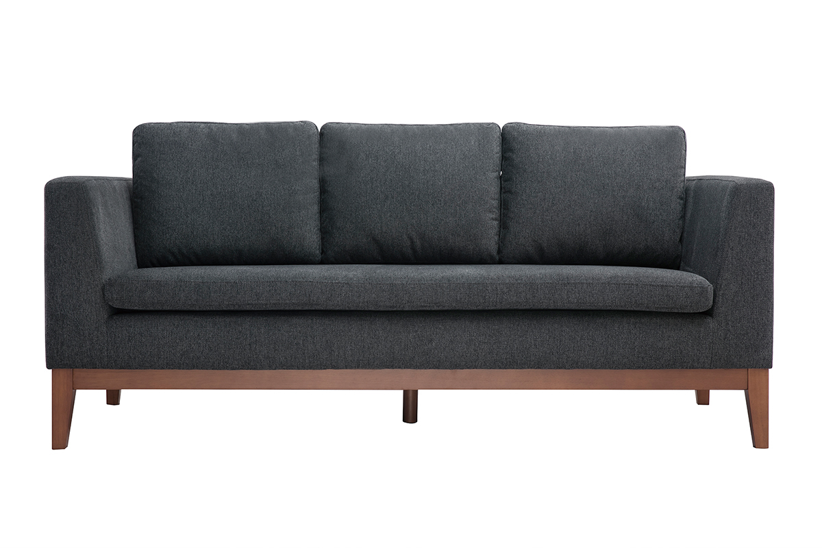 Ce canapé 3 places arbore des lignes essentielles sans aucun superflu. Un exercice d'équilibre et de retenue parfaitement mis en valeur par des finitions soignées. La structure apparente en hévéa teinté noyer renforce l'esthétique minimaliste du canapé tandis que le joli tissu effet velours texturé gris foncé (100% polyester) nous enveloppe de sa douceur.