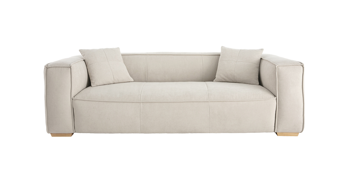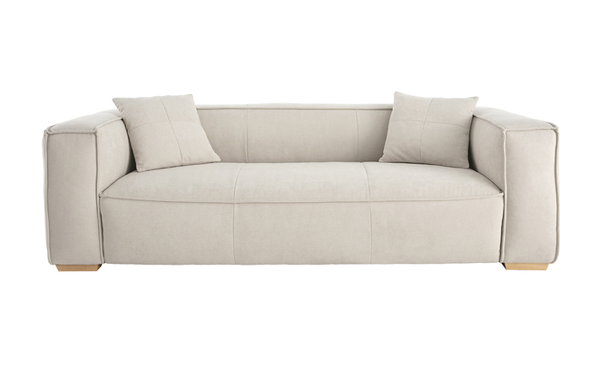 En reprenant la forme cosy d'un grand fauteuil, le canapé 3 places COBAIN invite à la détente... COBAIN est une pièce élégante avec une assise généreuse dont on admire la justesse de proportions. C'est un canapé contemporain associe une forme enveloppante à un magnifique revêtement effet velours et un piètement authentique en hévéa massif. Canapé design travaillé tout en douceur, il forme le cocon confortable et raffiné qu'on aime tant retrouver dans les salons cosy.