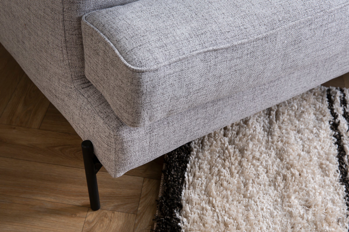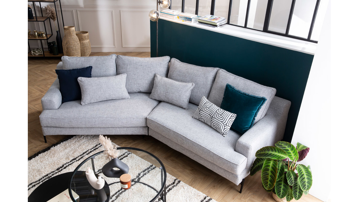 Fabriqué intégralement en France, ce canapé design en possède l'élégance caractéristique et le style indémodable. Son revêtement en polyester gris chiné et la finesse de son piètement en métal ajoutent une touche de modernité à cette jolie forme épurée. L'accumulation de coussins qui forme le dossier donne à l'ensemble un côté douillet. Pas de doute : le canapé d'angle PUCHKINE invite tout le monde à la détente !