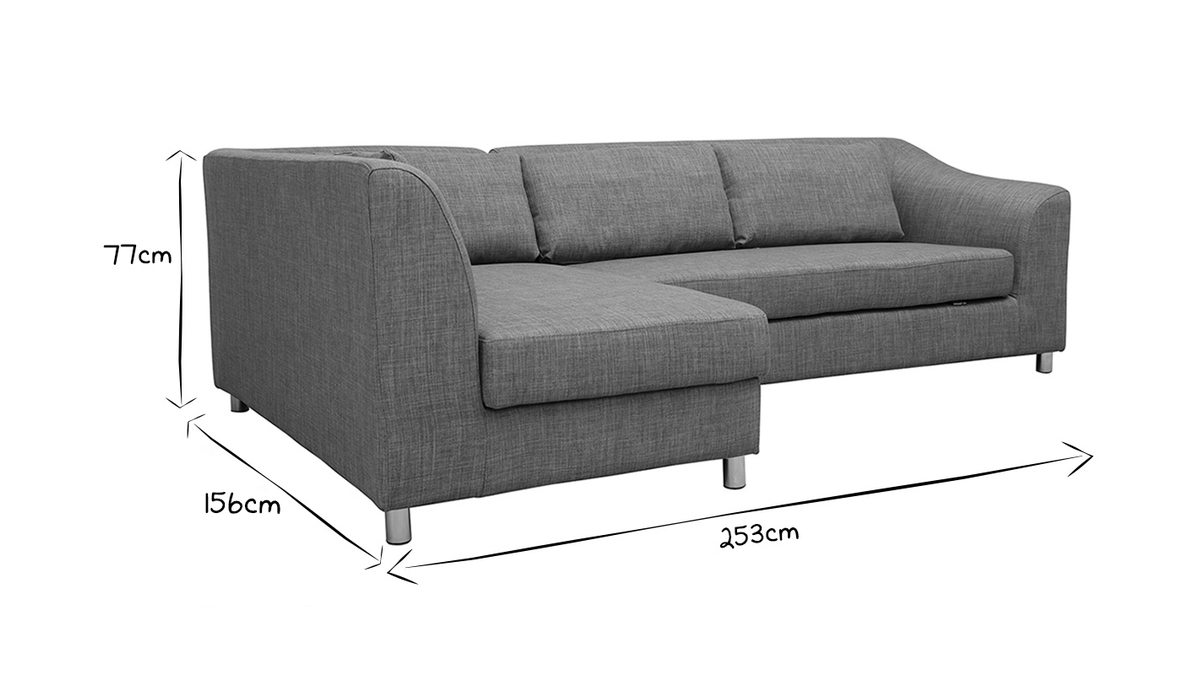 Dimensions méridienne : L156xP91xH77, assise L134xP69xH42 cm