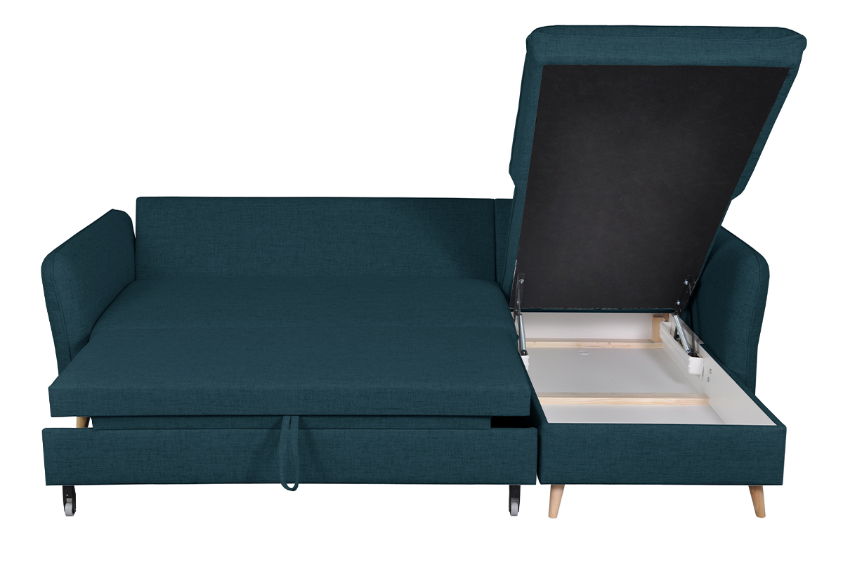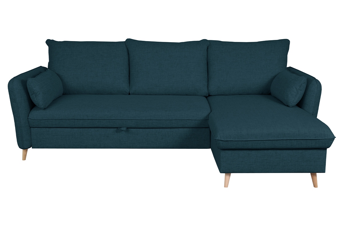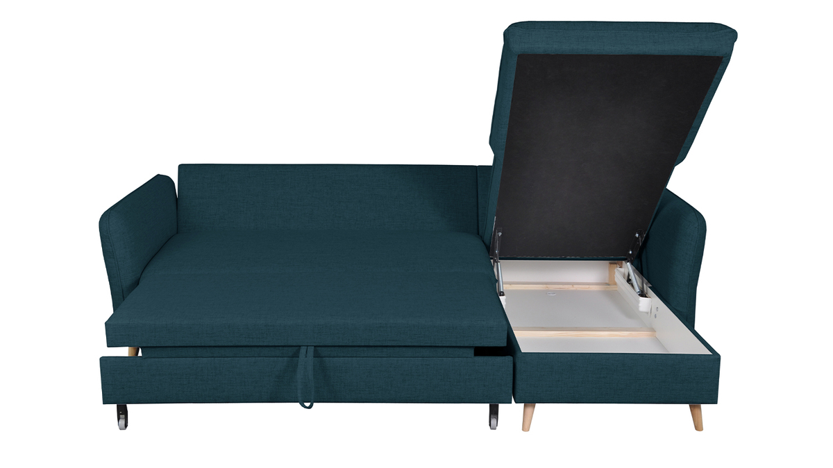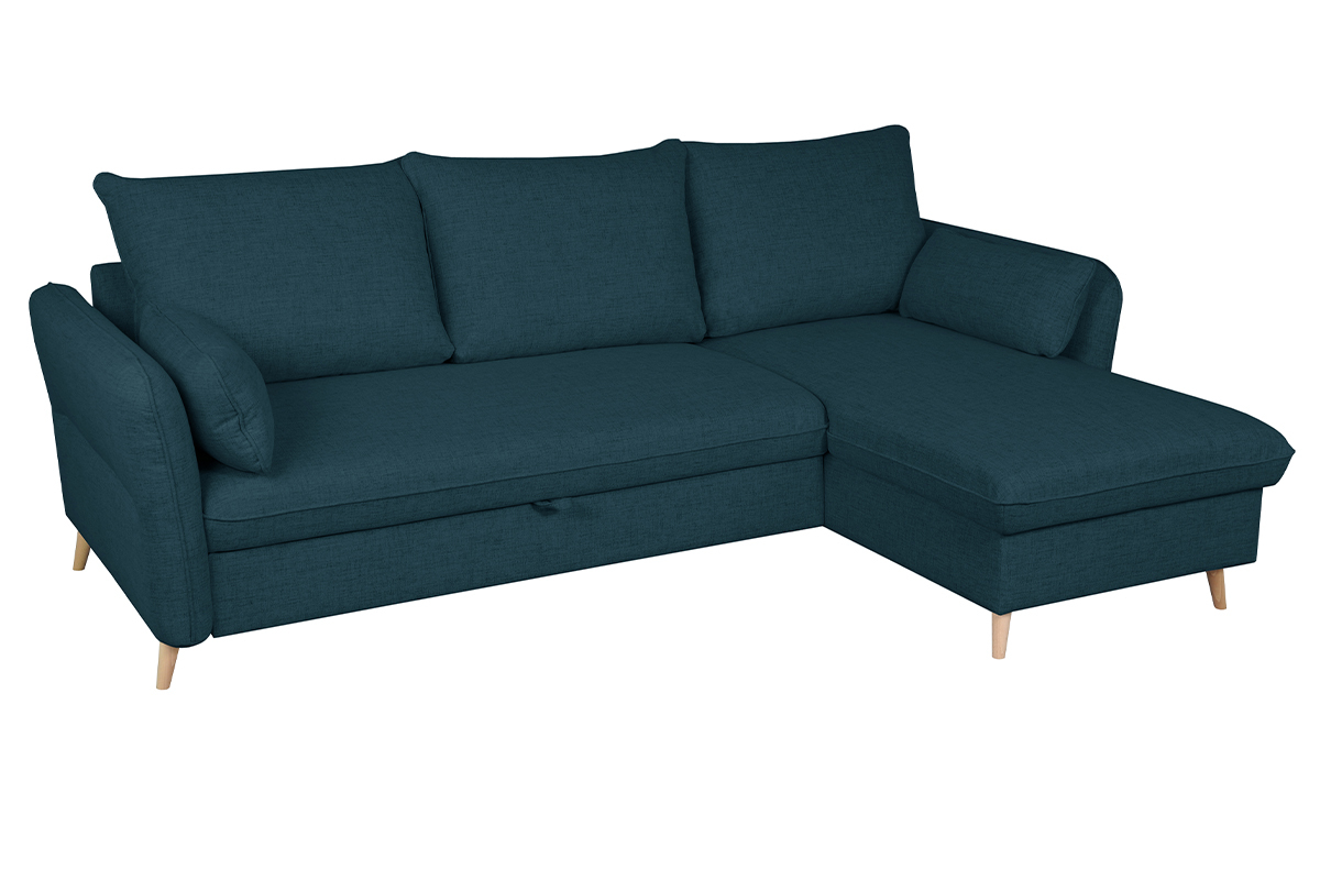 Ce canapé d'angle voit les choses en grand. Canapé, lit, rangement... DRISS est un canapé trois-en-un aux dimensions généreuses et au style superbe. Un joli revêtement en polyester enveloppe assise et dossier pour un rendu ultra cosy. Il est complété par quatre pieds en bois massif, aussi solides que déco. Grâce à son style scandinave affirmé, ce canapé d'angle convertible bleu océan est un indémodable facile à vivre. Avec son épais rembourrage et ses jolis angles arrondis, ce n'est pas une assise de salon classique : c'est une véritable invitation à la détente.