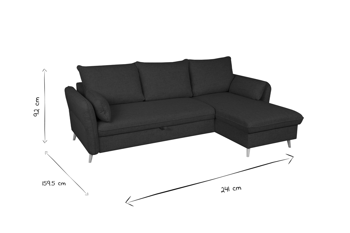 Le rembourrage de ce canapé d'angle réversible est composé de deux couches de mousse, une couche de mousse haute résilience pour la tenue et une couche de ouate pour le confort. Une fois l'assise tirée, ce convertible offre une belle surface de couchage (L140 x L205 cm) pouvant accueillir 2 personnes. La méridienne renferme un coffre de rangement, pratique pour le linge de lit.