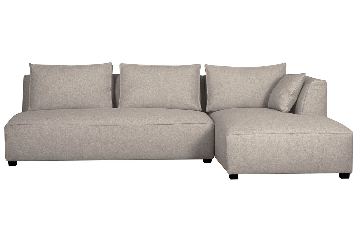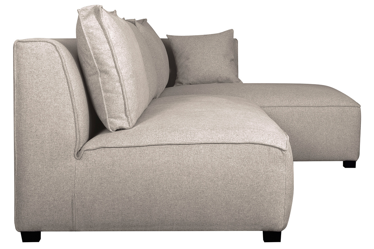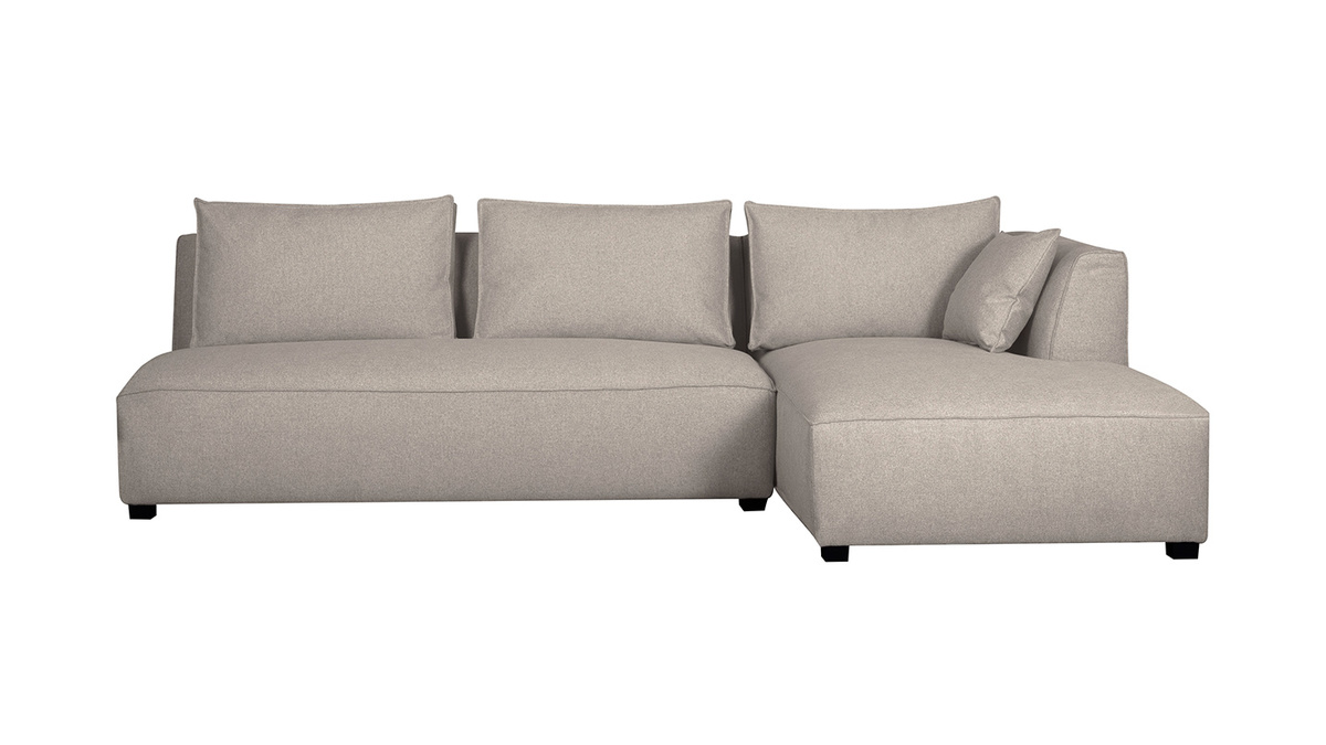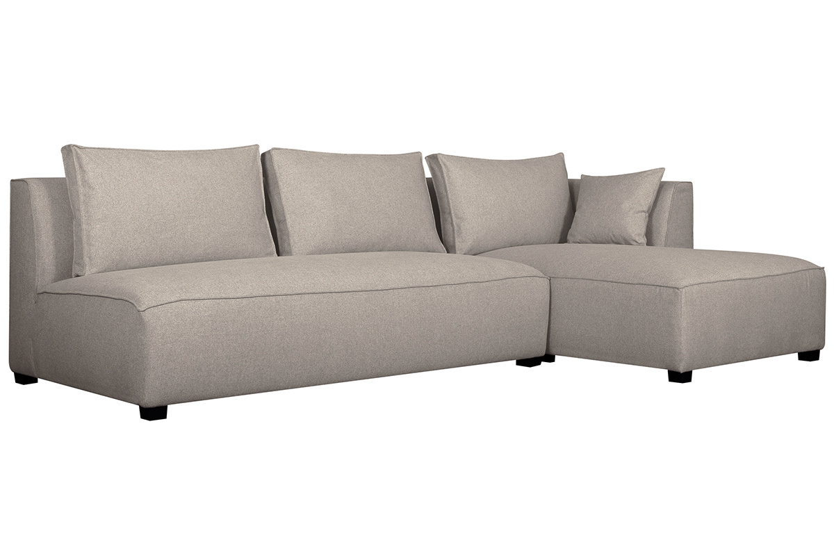 Canapé d'angle droit modulable avec chauffeuse double en tissu beige naturel PLURIEL