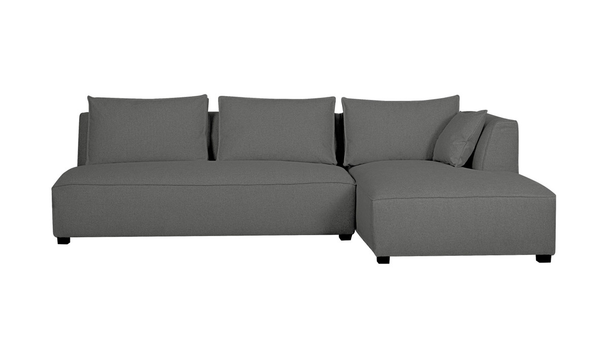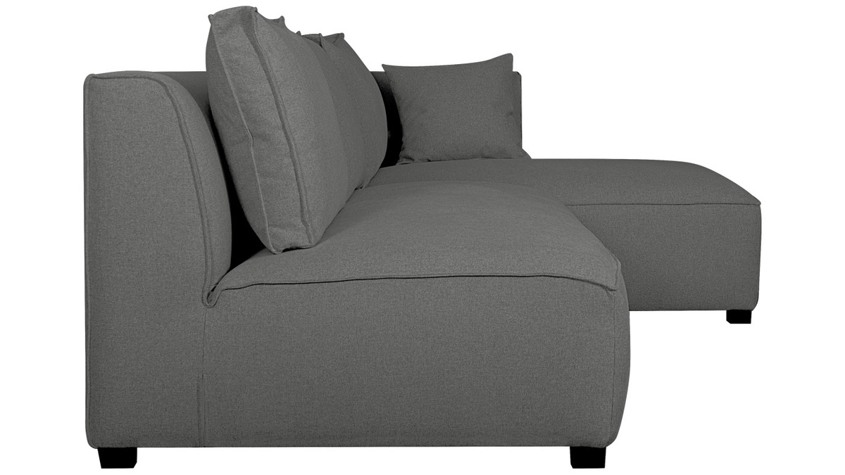 Le canapé d'angle droit PLURIEL comprend deux éléments indépendants : une chauffeuse 2 places et une méridienne. Associées, elles forment un beau canapé d'angle droit contemporain, aux dimensions généreuses (L294 x P106-168 x H75 cm). Utilisées séparement, elles sont parfaites pour des réunions conviviales dans les petits salons. Chaque élément est équipé de coussins d'appoint et offre un très bon confort d'assise. Avec sa ligne massive et son coloris intemporel, ce canapé d'angle modulable a tout pour devenir l'indispensable des salons cosy.