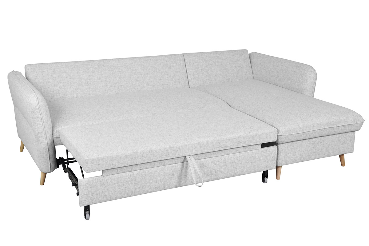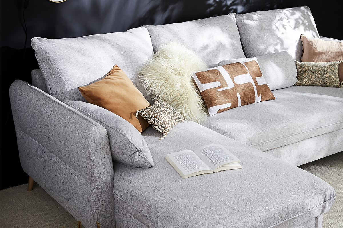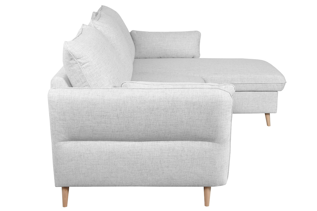 Ce canapé d'angle est réversible : vous pouvez positionner l'angle à droite comme à gauche. Le revêtement de ce canapé scandinave est en tissu déperlant pour faciliter son entretien.