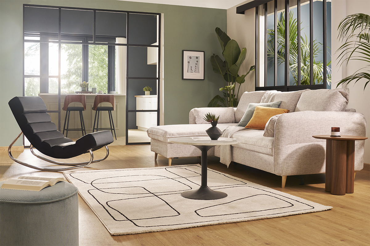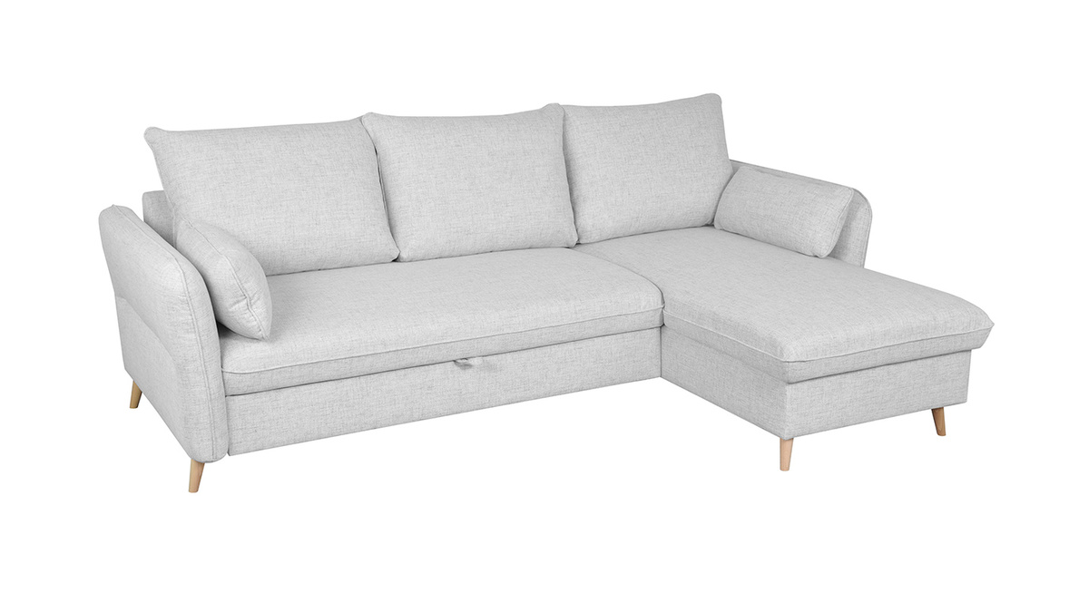 Ce canapé d'angle voit les choses en grand. Canapé, lit, rangement... DRISS est un canapé trois-en-un aux dimensions généreuses et au style superbe. Un joli revêtement en polyester enveloppe assise et dossier pour un rendu ultra cosy. Il est complété par quatre pieds en bois massif, aussi solides que déco. Grâce à son style scandinave affirmé, ce canapé d'angle convertible est un indémodable facile à vivre. Avec son épais rembourrage et ses jolis angles arrondis, ce n'est pas une assise de salon classique : c'est une véritable invitation à la détente.