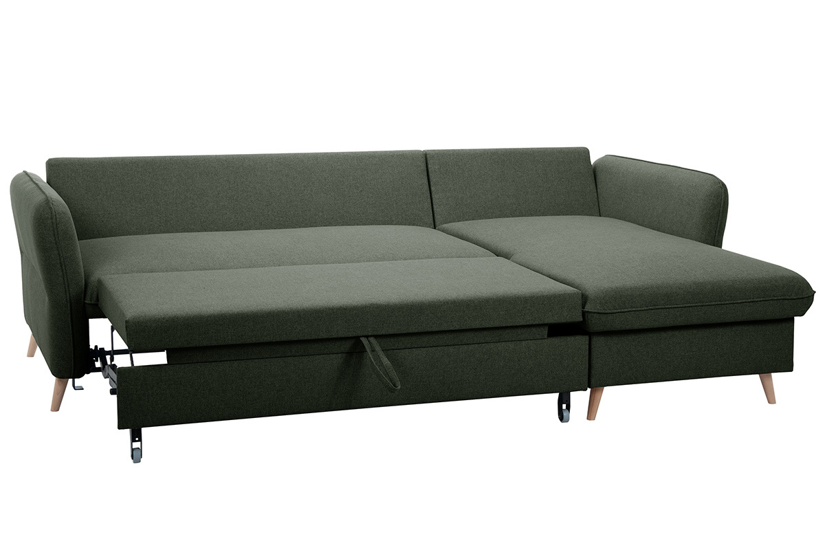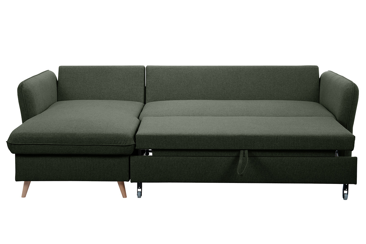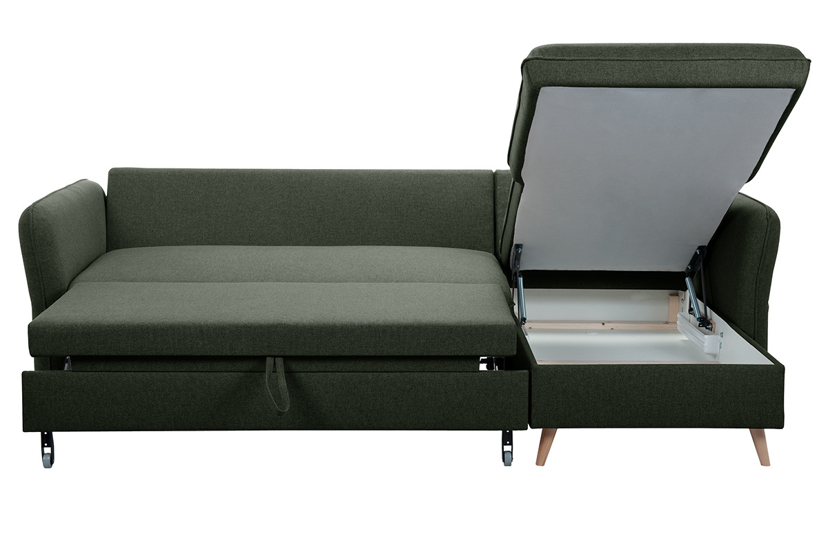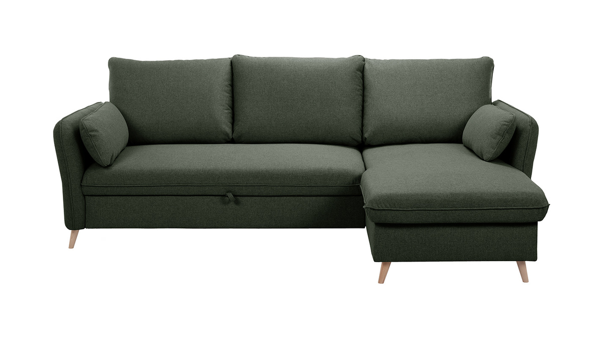 Canapé-lit vert kaki fabriqué en Europe. Livré prêt à monter.