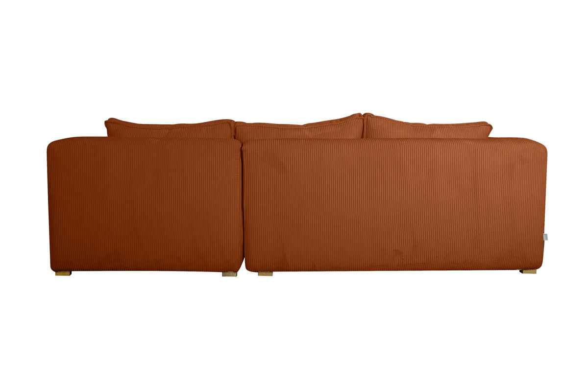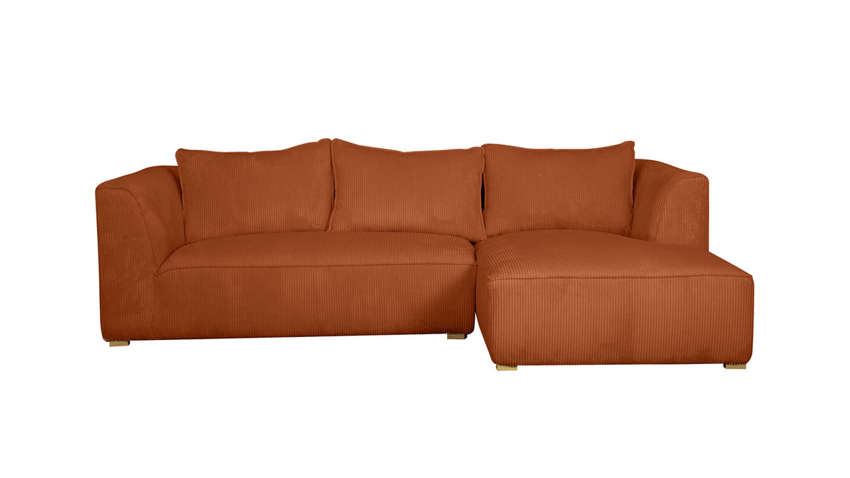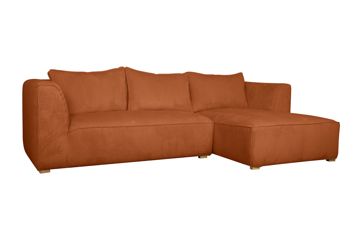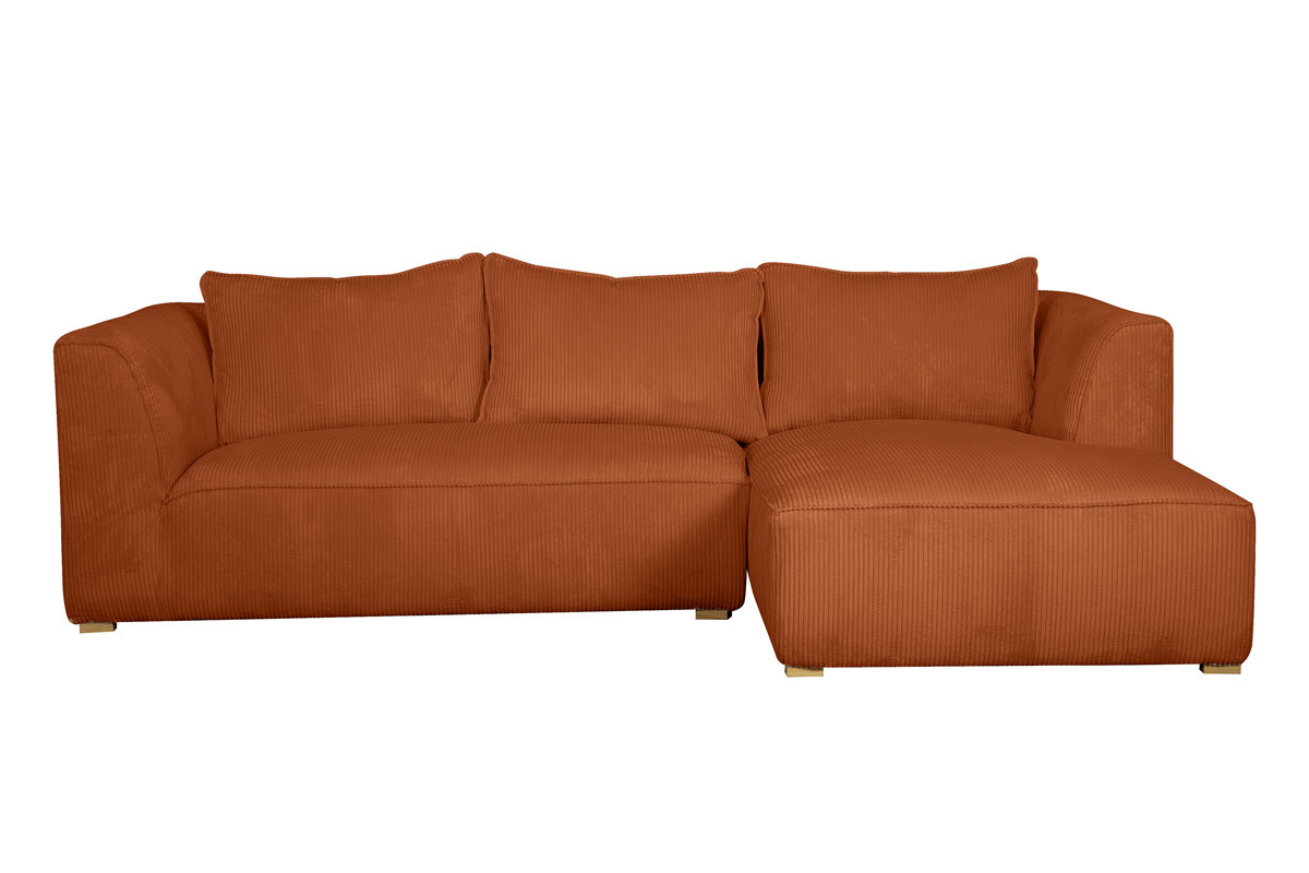 Canapé d'angle droit design en tissu velours côtelé terre brûlée 3-4 places livré prêt à monter.